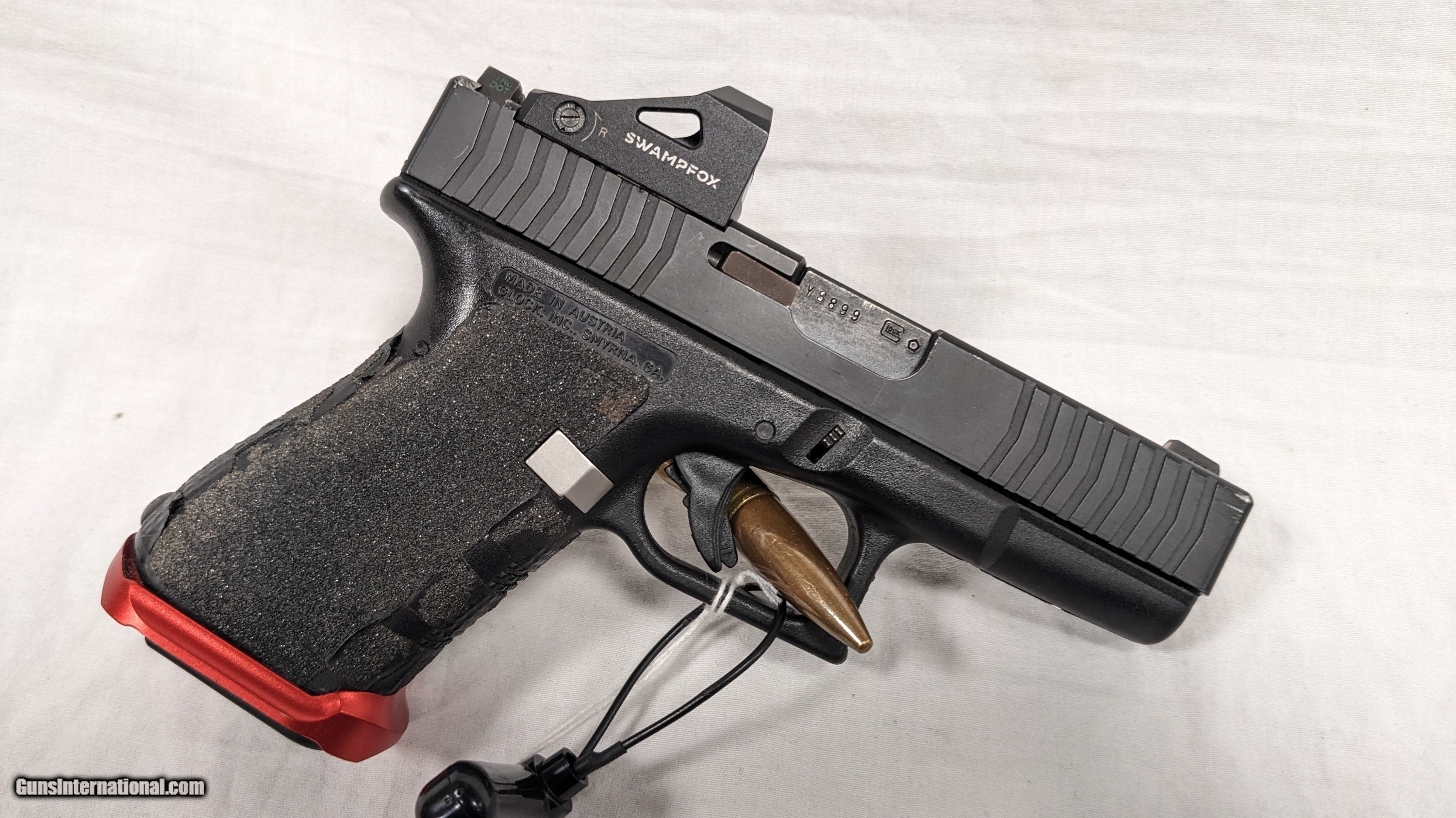 Description: Gen. 2 Frame w/ Aftermarket Slide. This is a used item. While we do not test fire our used firearms, we perform an inspection and function check to determine the firearm is fully functional to the best of our ability. Please call with any questions. If you are interested in purchasing this item, please give us a call. Please have the "Seller #" and/or "Guns International #" ready along with the contact information for the FFL you'd like the item shipped to. For Sale from First State Firearms of Delaware AKA "The Gun Shop" in New Castle, DE. Shipping is $25.00. Includes $100.00 in shipping insurance. Additional insurance available at buyer's expense and request. SOLD Handgun Caliber: 9x19mm Parabellum (9mm Luger, 9x19mm NATO) Manufacturer: GLOCK Model: 19 Serial Number: YS899US Condition: USED, 85% Action: SEMI-AUTO Extras: NONE / GUN ONLY Case: BOX INCLUDED |
