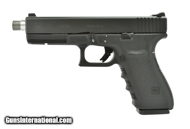 Glock 20 10mm caliber pistol. Full size model with threaded barrel, long slide kit, 2 magazines, and box. Excellent condition.