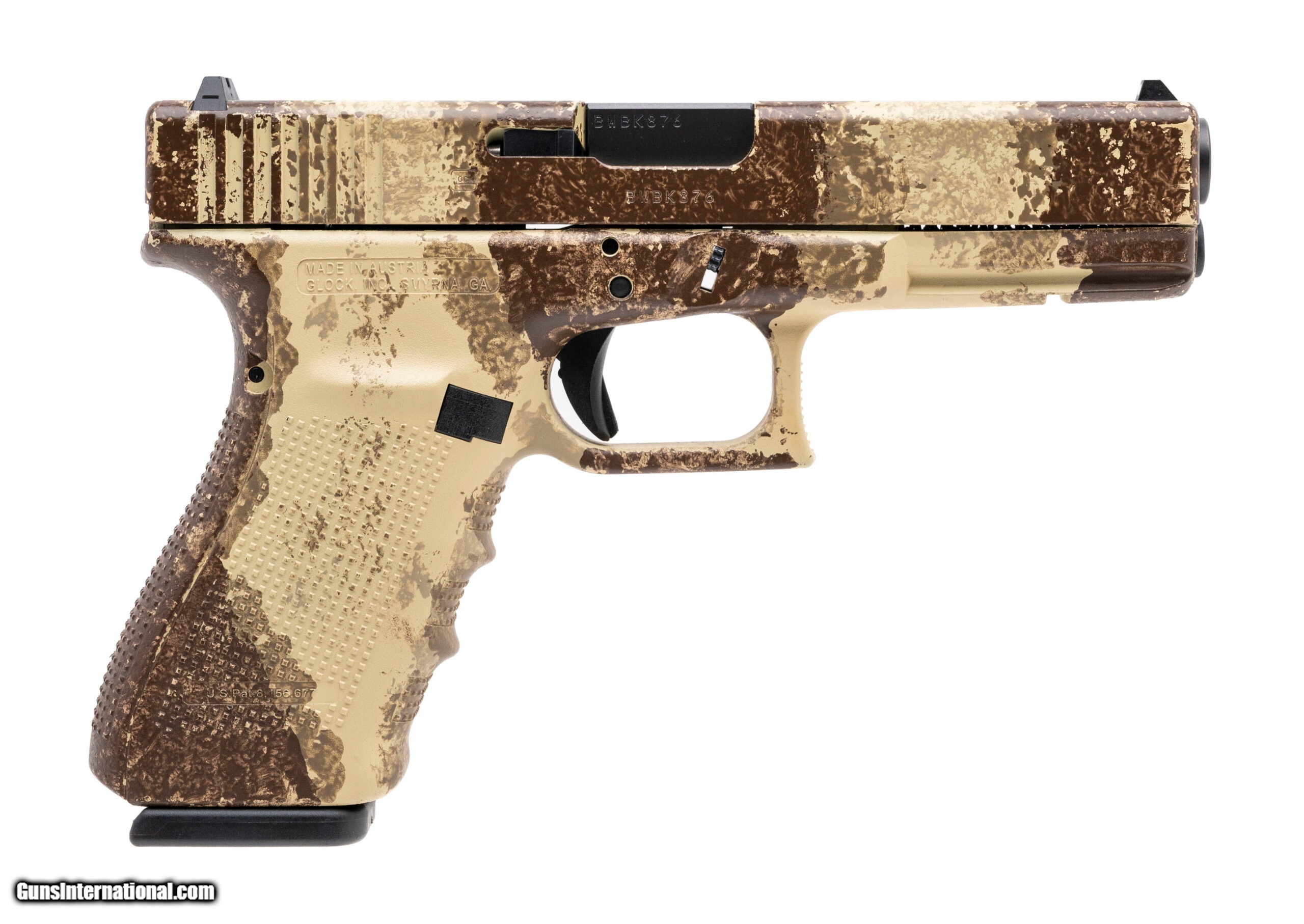 Description: "SN:BWBK876. Modern Production. 10mm With a 4.5"" barrel. Bore is in excellent condition. Full size custom Polymer pistol. Custom camo finish and grips are in good condition. Overall condition is good. SOLD |