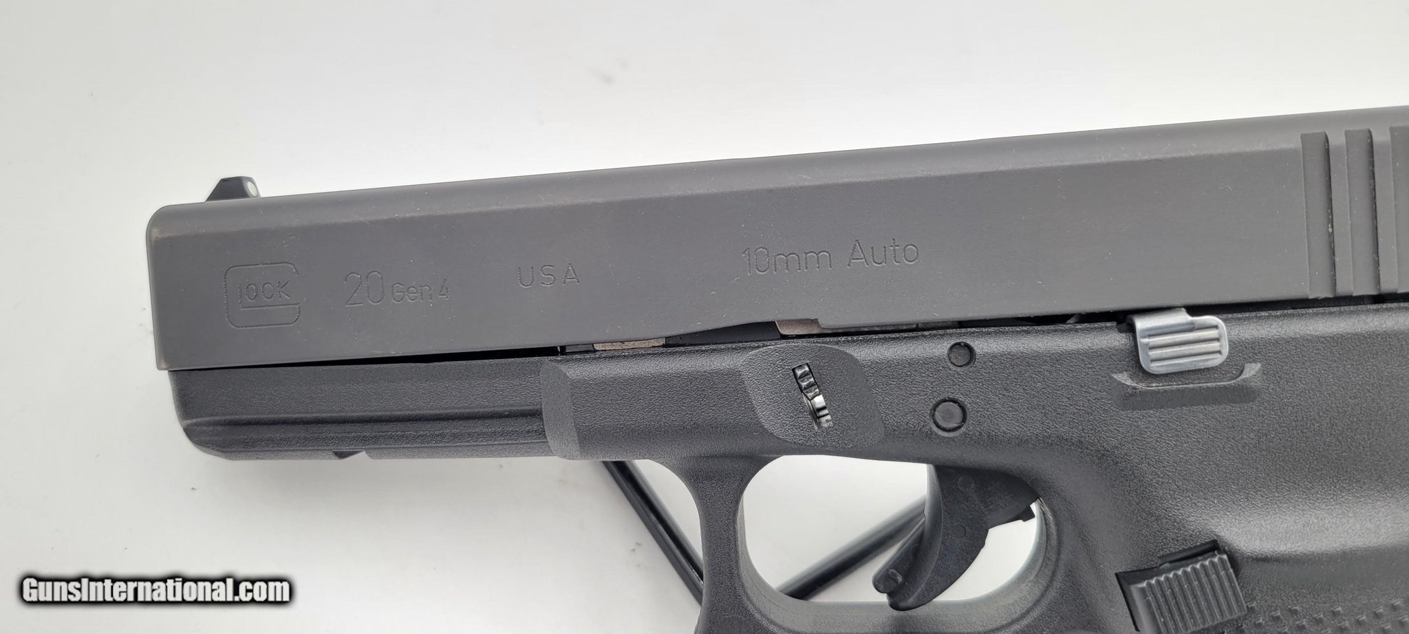 Description: Guns Listing ID: 579498 GLOCK G20 GEN4 10MM 4.5\" INCH BARREL COMES WITH BOX AND 2-15 ROUND MAGAZINES GUN IS IN EXCELLENT CONDITION SOLD Manufacturer: GLOCK Model: G20 GEN 4 Caliber Info: 10MM Condition: Used - Non-Certified Barrels: 4.61" BARREL Action: STRIKER FIRED Finish: BLACK Weight: 1.91 LBS. |