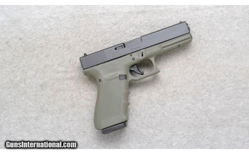 Description: This Glock Model 21 Gen 4 is a right hand semi-auto pistol in .45 ACP Cal. It has a 4.5 inch barrel with a rear serrated slide. A blade front sight and notch rear sight, both with white sight dots. The grip is a textured green polymer with molded finger grooves. It has a lower accessory rail. .45 ACP SOLD Chambers: 13 round magazine. Metal Condition: Excellent. Bore Condition: Excellent. Barrels: 4.5 inch barrel with a rear serrated slide. Weight: 28 oz. Sights: Blade front. Notch rear. Both with white highlights. Item Location: Richfield, WI |