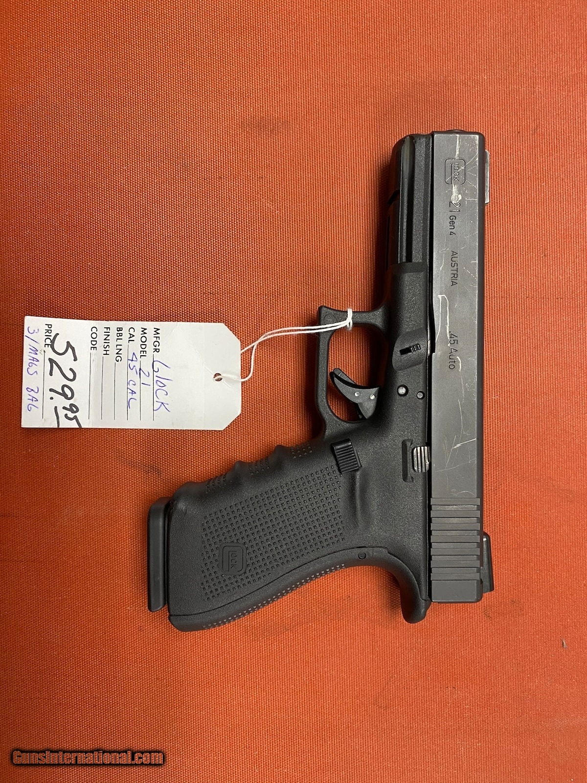 Description: Guns Listing ID: 575588 GLOCK 21 GEN 4 W/ 2 EXTRA MAGS IN BAG CALIBER-.45 AUTO CALL KK‚‚S LOANS MUSIC & JEWELRY IN TULLAHOMA, TN AT (931) 455-2255 AND ASK FOR JACOB FOR MORE INFORMATION. ACCEPTING OFFERS SOLD Manufacturer: GLOCK Model: 21 GEN 4 Caliber Info: .45 AUTO Condition: Used - Non-Certified Barrels: 4 BARREL Finish: BLACK |