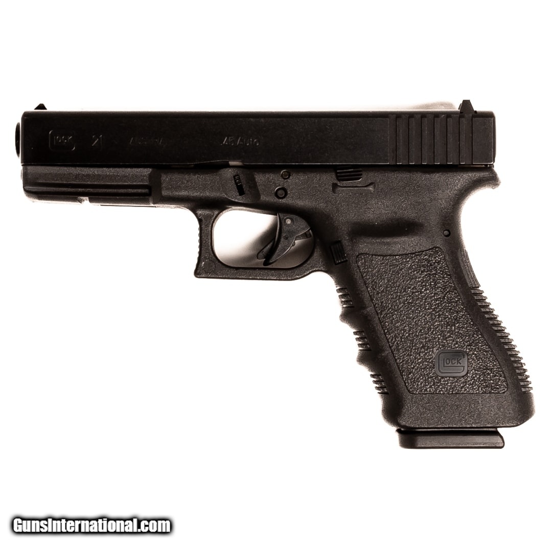 Description: Guns Listing ID: 821946 The Glock 21 is a polymer-framed pistol chambered in 45 ACP via staggered-column magazine. It‚‚s well suited for self-defense. This G21 includes the original case, two 13-round magazines, and a loader. Get the best bang for your buck when you get a Certified Used Firearm . When you see the Certified Used stamp on any of our firearms, you can be confident that you’re getting exactly what you want – a gun only in very good to excellent condition and held to the highest quality standard. All Certified Used Guns come with a ‘no questions asked’ return policy . PLUS, ALL CERTIFIED USED GUNS SHIP FREE SOLD Manufacturer: GLOCK Model: 21 Caliber Info: .45 ACP Condition: Used - Certified Barrels: 4.5 BARREL Finish: BLACK |
