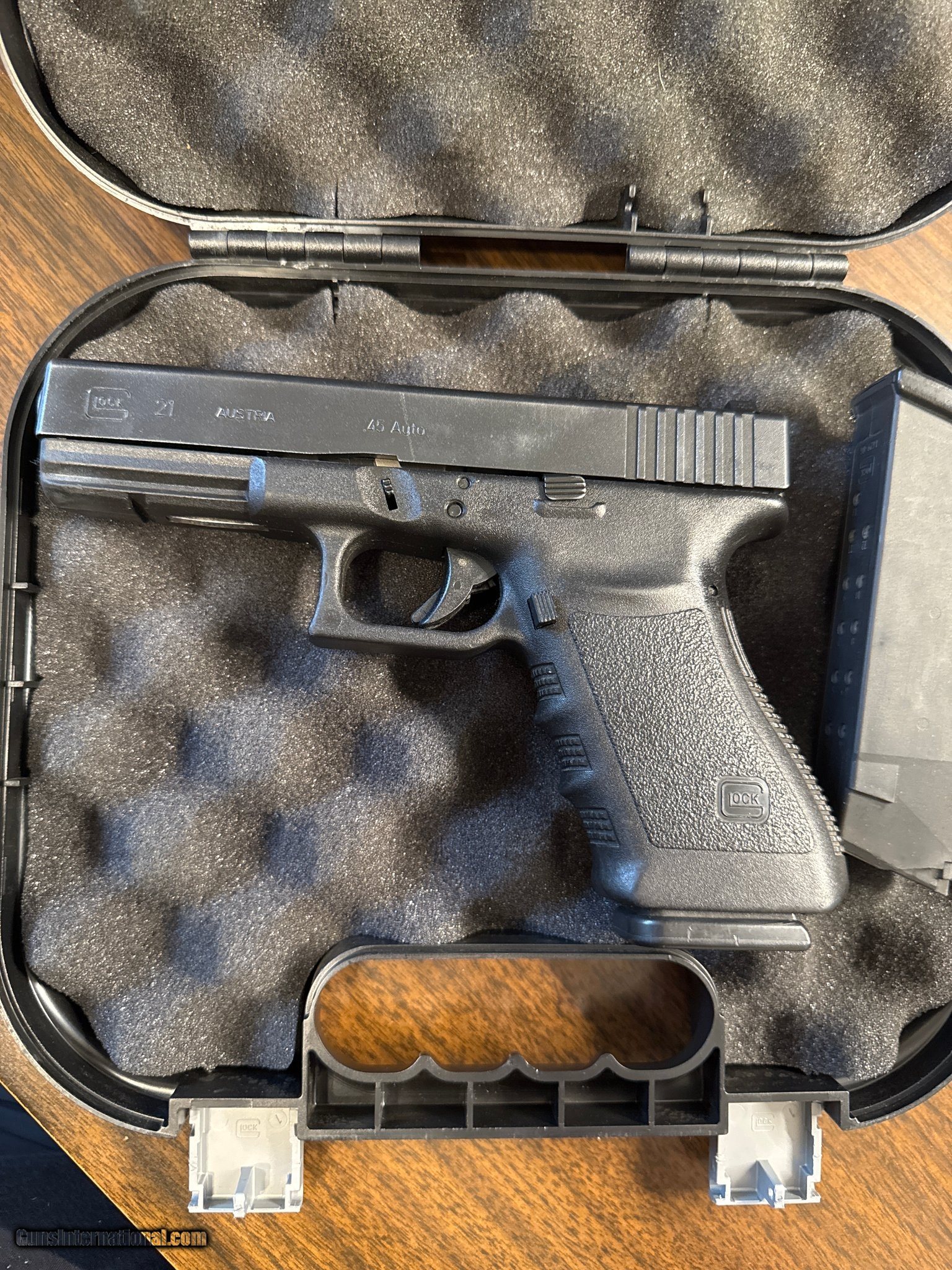 Description: Guns Listing ID: 521698 Glock 21 GEN 3 law enforcement trade-in gun is in very good condition with very minor external cosmetic wear. Internal parts are also in good condition comes with, Glock box, and 2 - 13 round magazines. The gun has night sights but they seem a bit dim SOLD Manufacturer: GLOCK Model: G21 GEN 3 Caliber Info: .45 ACP Condition: Used - Non-Certified Barrels: 4.5 Action: SEMI AUTOMATIC Finish: black |