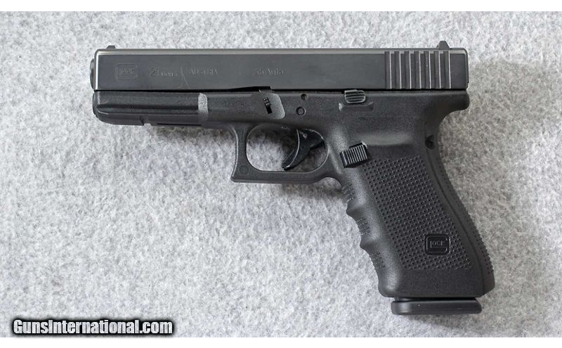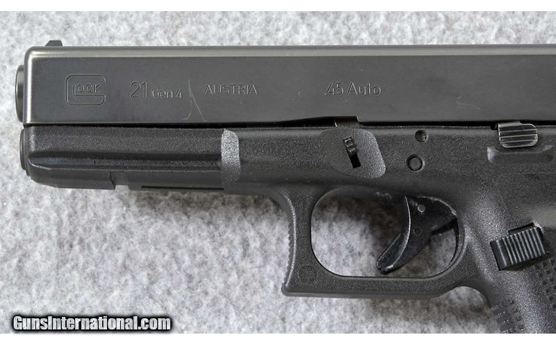 Description: Reliability and simplicity have made GLOCK® semi-automatic pistols a favored sidearm for law enforcement, military, and civilian use all over the world. The GLOCK 21 Semi-Auto Pistol is a full-size service pistol, shooting the .45 ACP pistol cartridge, a standard military round for over 100 years with proven knock down power. Rough grip texturing on the polymer frame provides a sure hold on the pistol when hands are wet or sweaty. The dovetailed rear sight is drift adjustable and has a white outline around its notch; the fixed front blade has a white dot. Sight acquisition is quick in any light. The GLOCK 21 Semi-Auto Pistol is an ultra-reliable handgun that is easy to learn how to operate and maintain, making it an ideal choice for self-defense, whether it be for carry or home protection. .45 ACP SOLD Metal Condition: Good with holster wear Bore Condition: Very good with signs of use Barrels: 4.61 inch barrel Triggers: Striker fire Weight: 31 Oz. Sights: Glock white outlined rear sight with white dot front Item Location: Lehi, UT |