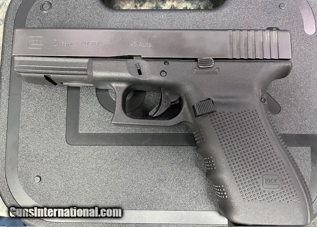 Description: Guns Listing ID: 544475 GLOCK 21 GEN 4 SEMI AUTO 45ACP WITH 4.61\" BARREL, 2MAGS, AND ORGINAL BOX. IN USED CONDITION. SOLD Manufacturer: GLOCK Model: G21 GEN 4 Caliber Info: .45 ACP Condition: Used - Non-Certified Barrels: 4.61 BARREL Action: SEMI AUTOMATIC Finish: black |