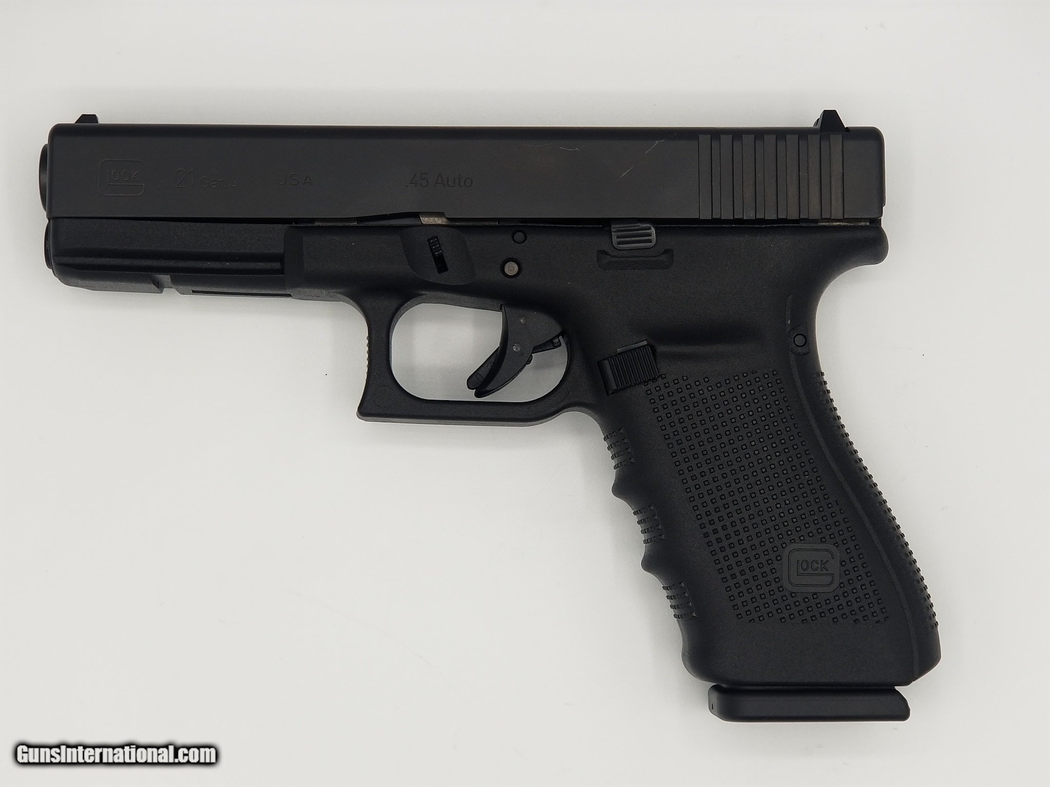 Description: Guns Listing ID: 779020 Glock 21 Gen 4, Double Action Only, Full Pistol, 45 ACP, 4.6\" Barrel, Polymer Frame, Matte Finish, Fixed Sights, 13Rd, 3 Magazines, Speed Loader, Lock and Key, Manual Booklet, Cleaning Rod, Two (2) Extra Back Straps. INV#1215015/UMM/DO SOLD Manufacturer: GLOCK Model: G21 GEN4 Caliber Info: .45 ACP Condition: Used - Non-Certified Barrels: 4.6 BARREL Finish: BLACK |