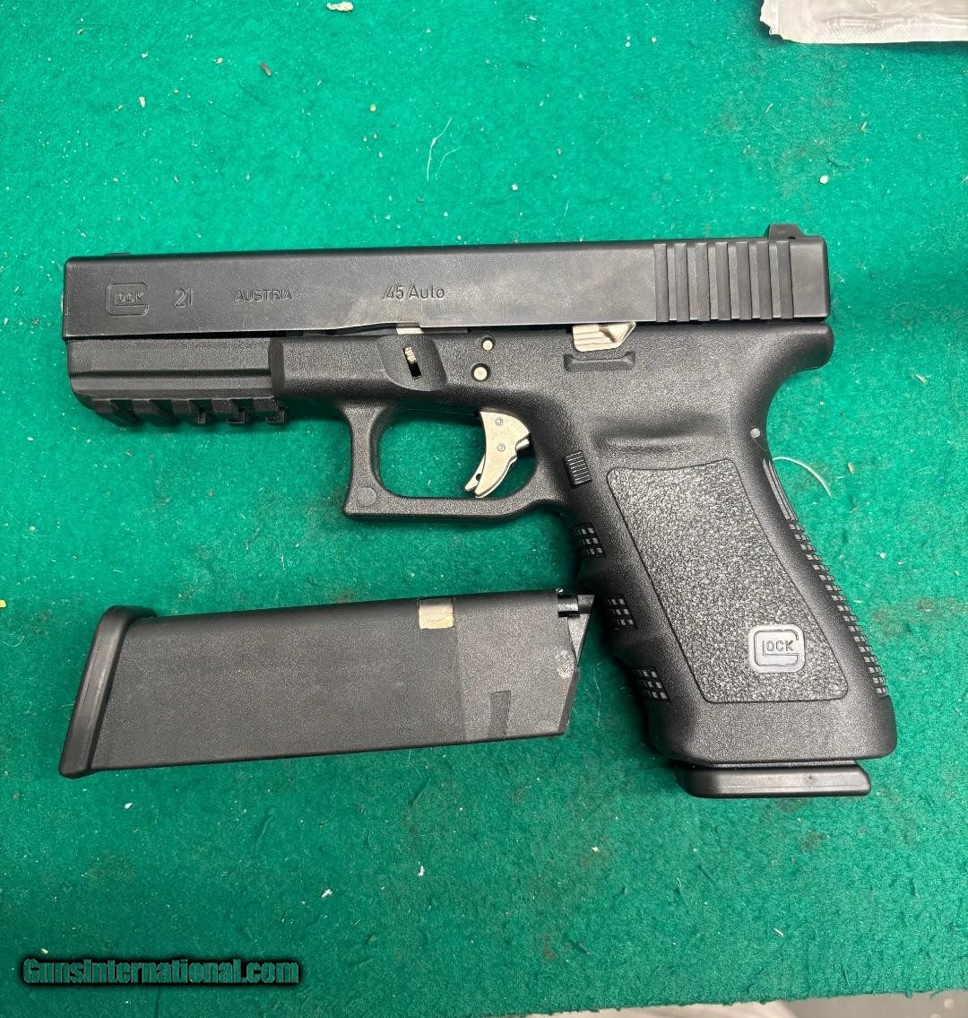 Description: Guns Listing ID: 576163 GLOCK G21 SF 45 ACP COMES WITH 2 MAGS SOLD Manufacturer: GLOCK Model: G21 SF Caliber Info: .45 ACP Condition: Used - Non-Certified Barrels: 4.5" BARREL Action: SEMI AUTOMATIC Finish: black |