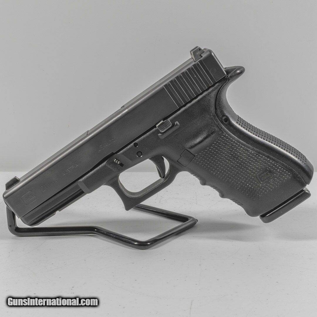 Description: Guns Listing ID: 882370 Manufacturer: Glock Model: 21 Gen4 Condition: Grade 2, very good Caliber: .45 ACP Action: Semi-Auto Barrel Length: 4.61\" Capacity: 13-rd -Please be aware that we have not test fired this gun. Unless otherwise stated, expect this firearm to fire and function safely. -All sales are final. Any discrepancies between the gun and our description should be communicated to us prior to the transfer. -Returns will not be accepted after the transfer process has been submitted or completed. -This item is a Police Trade-In or LEO. The gun you receive may vary from the gun featured in photos. This may include the number of mags, boxes/cases, any accessories, bore condition, and cosmetic flaws such as scratches, dents, blemishes, etc. LEO Weapon Grade Guide: Grade 1 The gun is in very good to excellent condition Grade 2 The gun is in good to very good condition Grade 3 The gun is in fair to good condition SOLD Manufacturer: GLOCK Model: LEO G21 Gen4, Very Good Caliber Info: .45ACP Condition: Used - Non-Certified Barrels: 4.61 BARREL Finish: BLACK |
