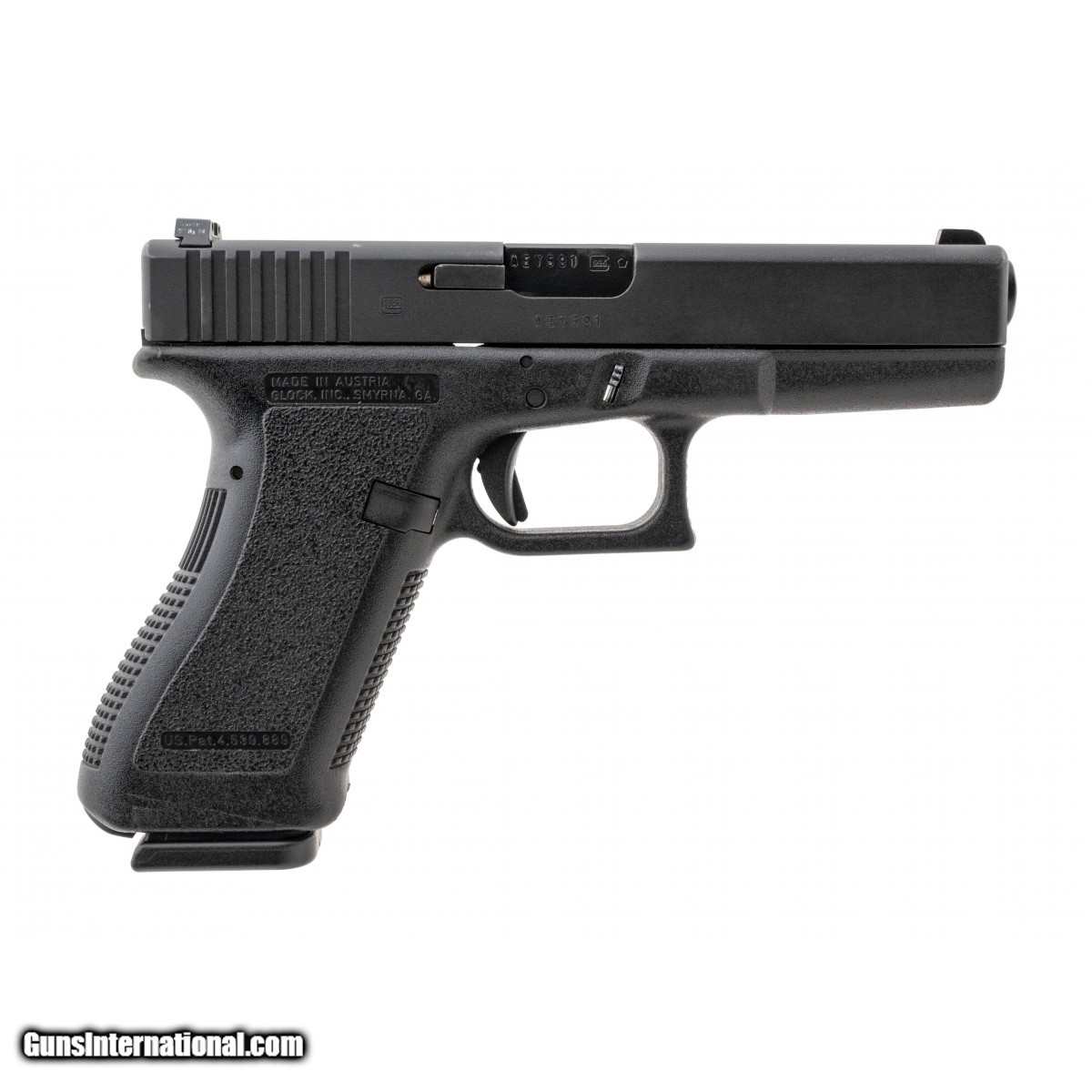 Description: " SN: AEY591US. Austrian polymer frame, striker fired pistol, with 4.49"" barrel. Overall excellent condition. with box and 2 extra magazines. SOLD |
