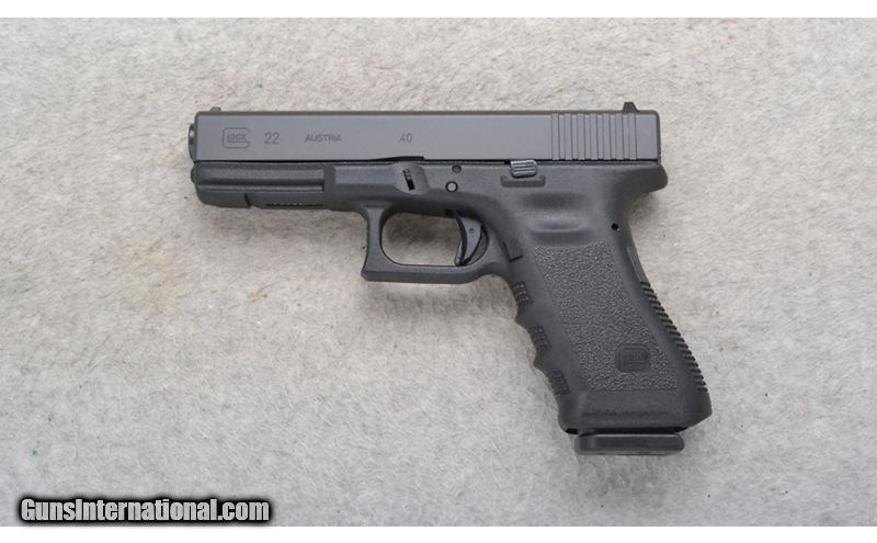 Description: This Glock Model 22 is a right hand semi-auto pistol in .40 S&W Cal. It has a 4.25 inch barrel with a rear serrated slide. A blade front sight and notch rear sight with white highlights. The grip is a textured black polymer with molded finger grooves. It has a lower accessory rail. .40 S&W SOLD Chambers: 15 round magazine. Metal Condition: Excellent. Bore Condition: Excellent. Barrels: 4.25 inch barrel with a rear serrated slide. Weight: 24 oz. Sights: Blade front. Notch rear. White highlights. Item Location: Richfield, WI |
