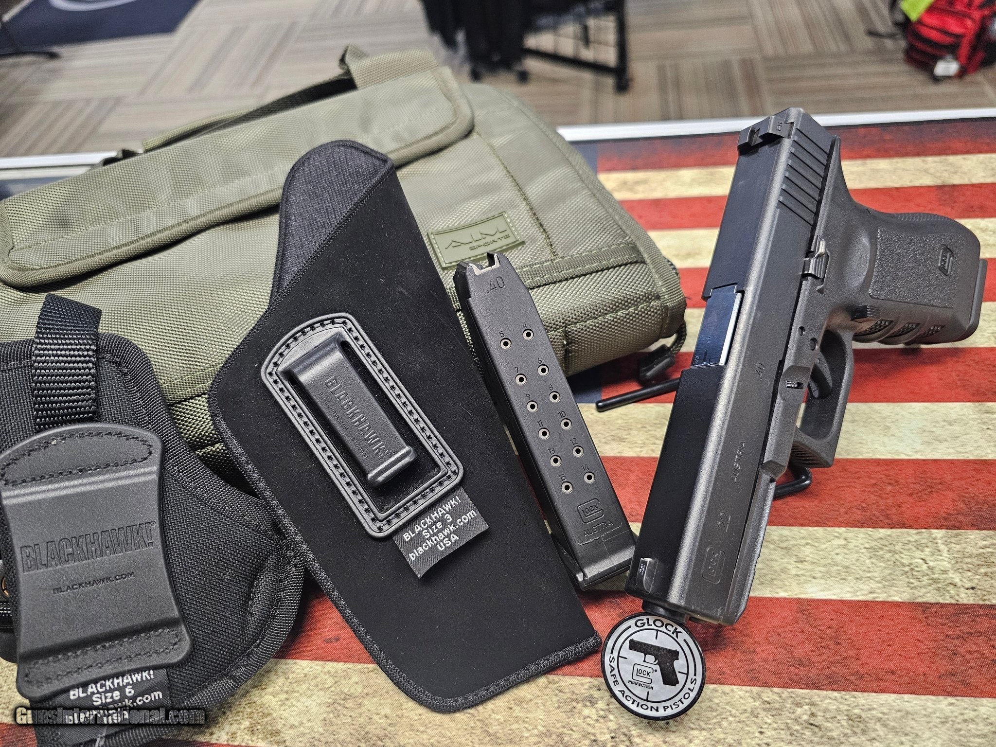 Description: Guns Listing ID: 550171 The Glock 22 is a full-size pistol chambered in .40 S&W, once the preferred sidearm of law enforcement agencies across the U.S. throughout the 1990s and 2000s. Known for combining stopping power with magazine capacity, the G22 remains a reliable and trusted platform for defense, duty, or range use. With a 4.6-inch barrel and 15-round capacity, the G22 delivers excellent balance, fast handling, and Glock’s proven Safe Action system — all in a rugged, low-maintenance package. Comes with a bag, 2 holsters and an extra magazine, as pictured. SOLD Manufacturer: GLOCK Model: 22 Caliber Info: .40 S&W Condition: Used - Non-Certified Barrels: 4.6 BARREL Action: SEMI AUTOMATIC |