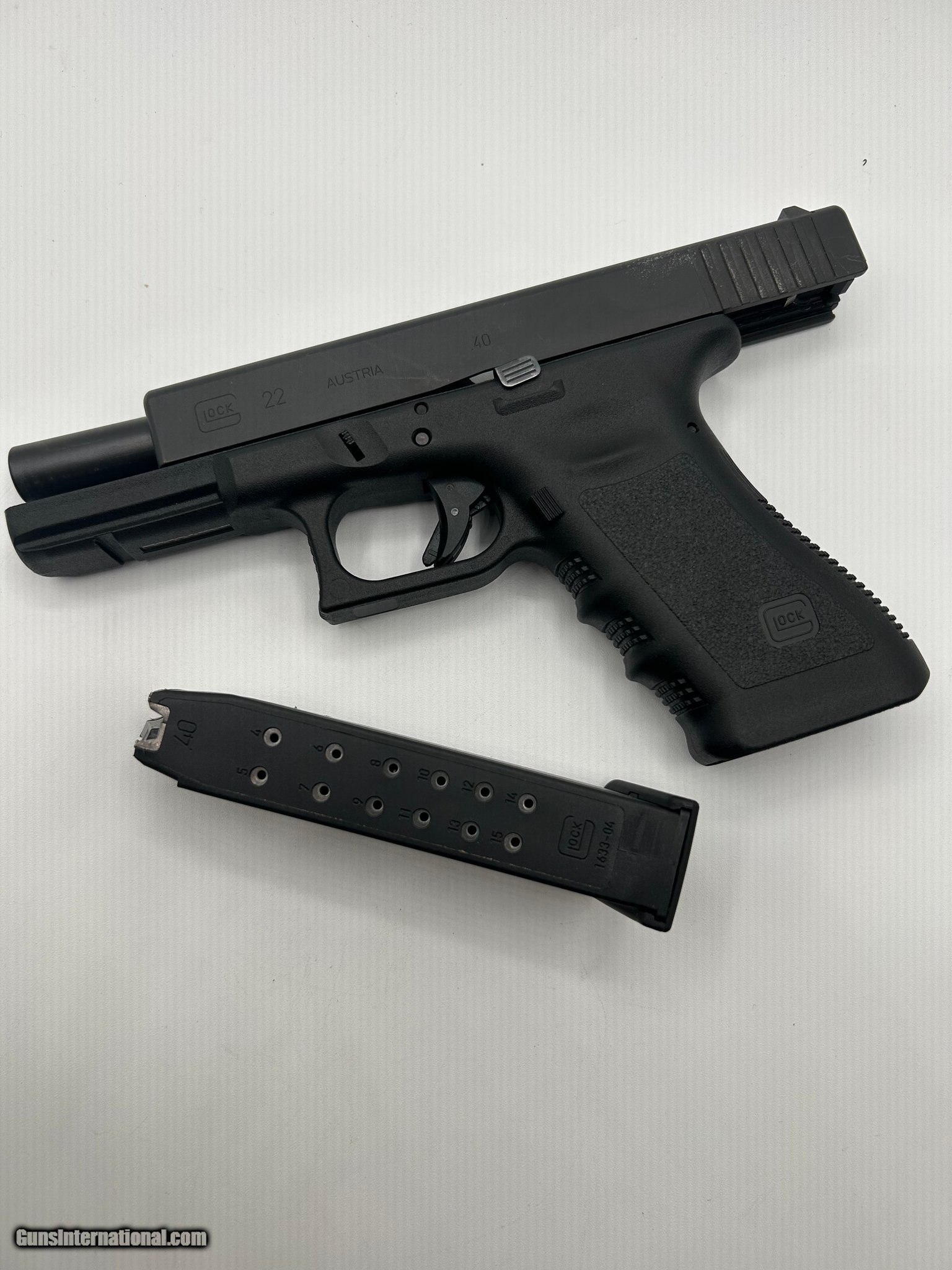 Description: Guns Listing ID: 560745 Introducing the GLOCK 22 - G22 .40 Caliber Safe-Action Pistol. With a Double Action Only (DAO) action mechanism. Boasting a 4.49-inch serrated steel slide and a full-size polymer frame with a Picatinny rail. The pistol features a 15 + 1 magazine capacity. The pistol features a Firing Pin/Trigger Block safety system. Equipped with fixed sights and black texture finger groove grips, it offers ergonomic comfort. This comprehensive package includes a mag loader, cleaning kit, pistol case, and gun lock. With dimensions of 8.03 inches in overall length, 5.51 inches in height, and 4.49 inches in width, alongside a weight of 34.39 ounces. 1 mag no box SOLD Manufacturer: GLOCK Model: 22 Caliber Info: .40 S&W Condition: Used - Non-Certified Barrels: 4.49" BARREL Action: SEMI AUTOMATIC Finish: black |