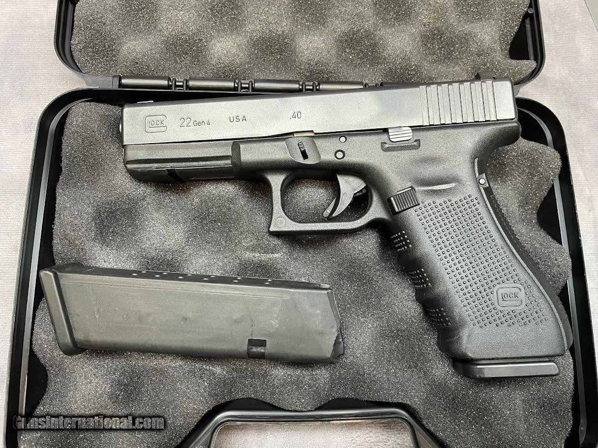 Description: Guns Listing ID: 575518 Glock 22 Gen 4, .40S&W, USED, Night sights, 2 magazines, hard case USED LE GUN SOLD Manufacturer: GLOCK Model: 22 Caliber Info: .40 S&W Condition: Used - Non-Certified Barrels: 4.49" BARREL Action: SEMI AUTOMATIC Finish: black |
