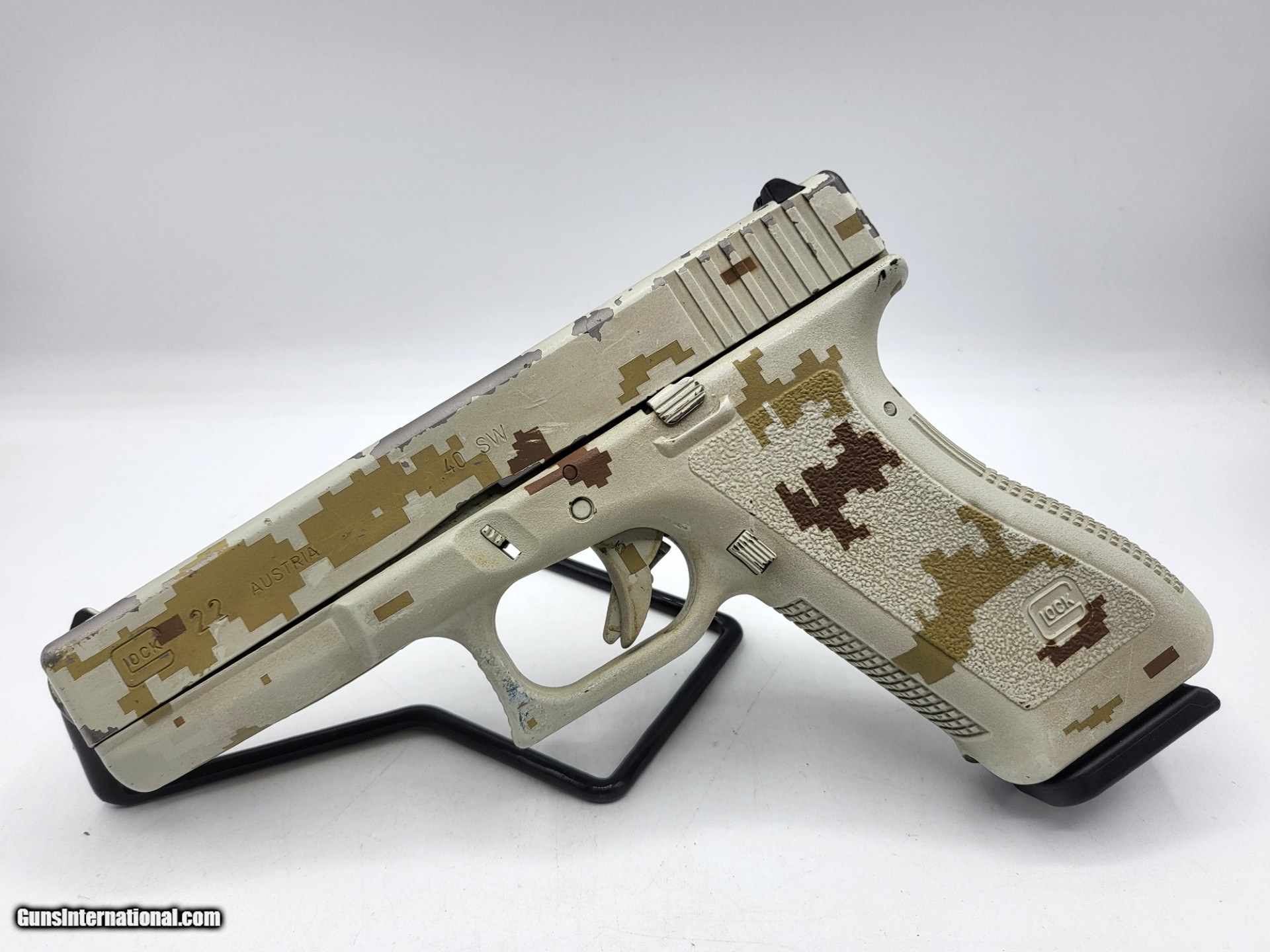 Description: Guns Listing ID: 619778 This is a pre-owned Glock 22 in fair condition, the pistol is in good practical condition but the added paint on the firearm is pealing and applied in areas not suited for the paint to be. The handgun comes with only 1-15+1 round magazine in .40 S&W. I#0388734 NMM AG Manufacturer: GLOCK Model: 22 Caliber Info: .40 S&W Condition: Used - Non-Certified Barrels: 4.5" BARREL Action: SEMI AUTOMATIC Finish: DESERT CAMO Price: $349.99 Contact Seller |