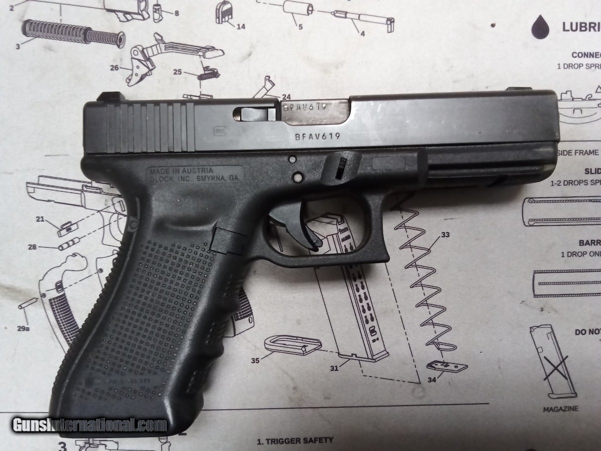 Description: Guns Listing ID: 646017 Glock 22 Gen 4. LE trade in. Typical duty wear marks. Comes with Glock Night Sights and 3 magazines. SOLD Manufacturer: GLOCK Model: 22 G22 GEN 4 .40 (Night Sights) POLICE TRADE IN Caliber Info: .40 CALIBER Condition: Used - Non-Certified Barrels: 4.49 BARREL Finish: BLACK |