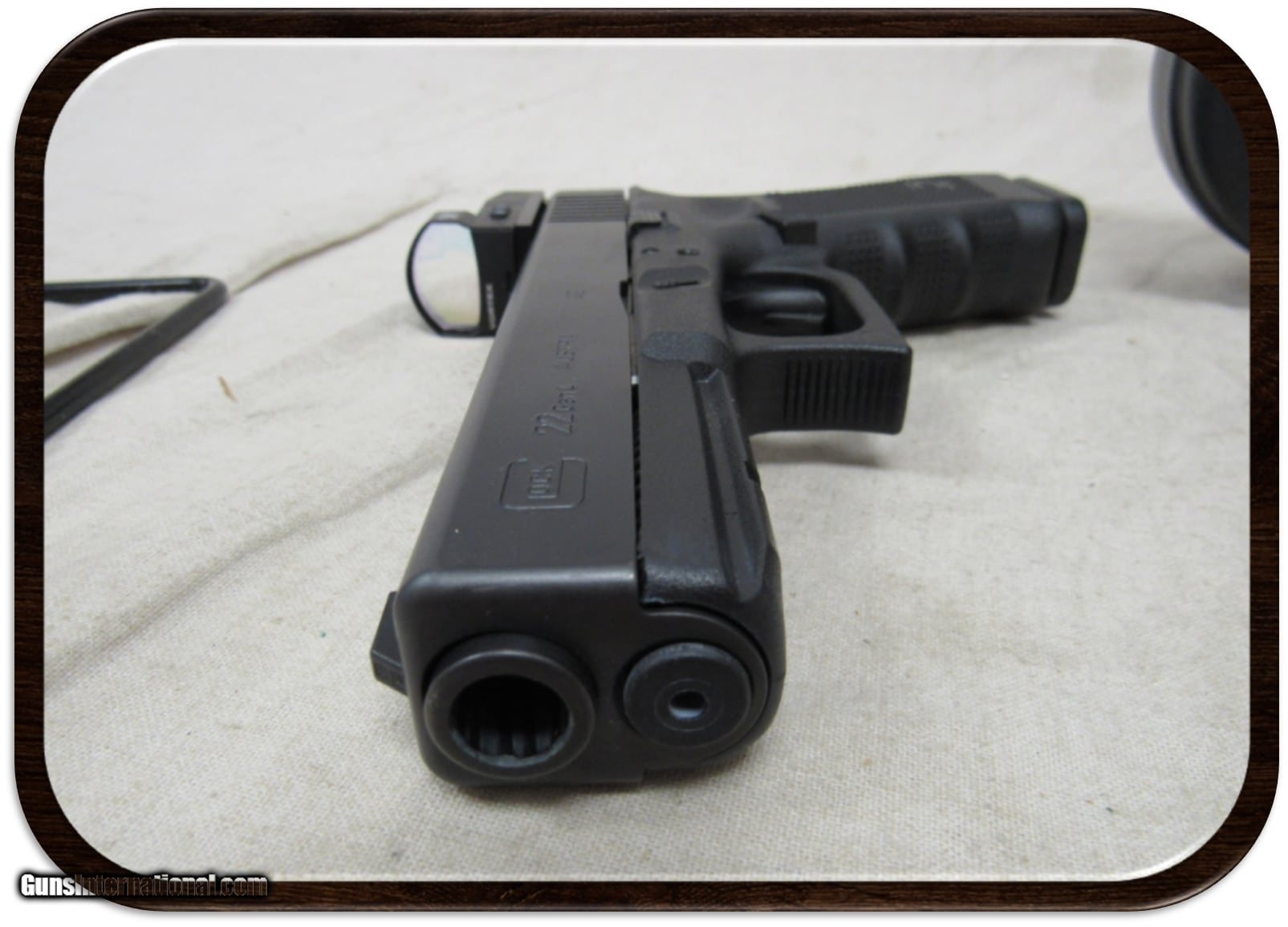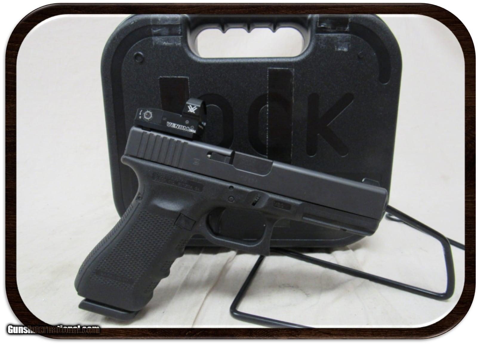 Description: Guns Listing ID: 920002 GLOCK 22 G22 GEN 4 - 40 S&W - 15-ROUNDS - 4.49\" BARREL STRIKER-FIRED SEMI-AUTO PISTOL INCLUDES GLOCK HARDCASE W/ OWNER‚‚S MANUAL + 3 MAGAZINES PREINSTALLED VORTEX VENOM RED DOT SIGHT The Glock 22 holds more rounds for its size and weight than most other full-sized handgun in its class. It features Glock‚‚s Safe Action system which provides a consistent trigger pull from the first to the last round. The three automatic independently operating mechanical safeties are built into the fire control system of the pistol. All three safeties disengage sequentially as the trigger is pulled and automatically reengage when the trigger is released. The frame is made of polymer with hardened steel guides. It features an ideal grip angle and low weight. The slide stop lever and the magazine catch are easily operated with the shooting hand. The advanced surface treatment of the slide results in optimal hardness by considerably reducing wear and tear and it makes it corrosion resistant, even when operating in saltwater conditions. The matte surface minimizes light reflection. The barrel is mechanically locked and cold-hammer forged. It also has the same advanced surface treatment as the slide. Its extractor serves as a loaded chamber indicator to comply with the laws of certain states and its position may visually and physically indicate whether there is a cartridge in the chamber of the pisto SOLD Manufacturer: GLOCK Model: 22 G22 GEN 4 Caliber Info: .40 S&W Condition: Used - Non-Certified Barrels: 4.49 BARREL Finish: BLACK |