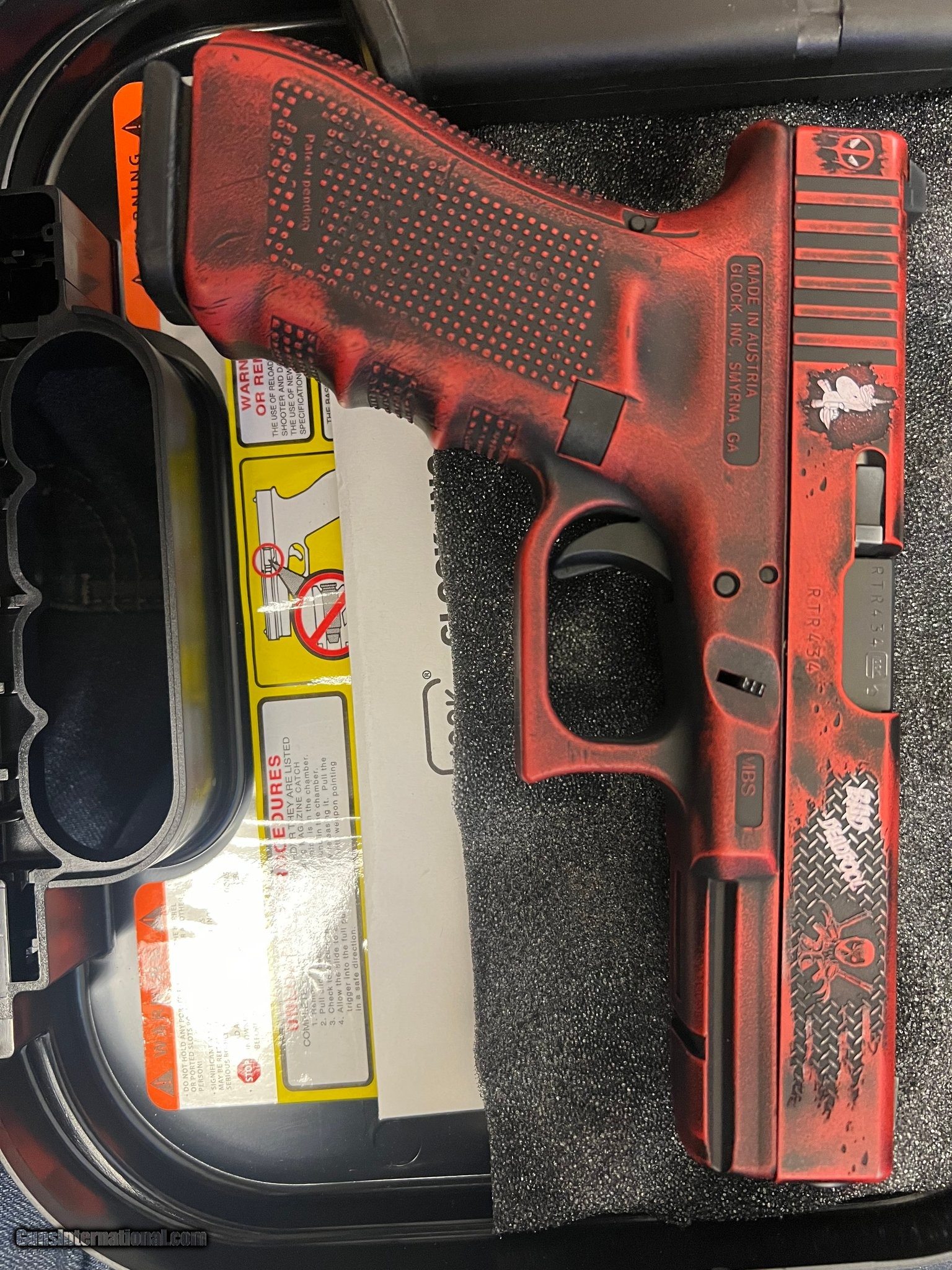 Description: Guns Listing ID: 361831 Custom “Deadpool" Glock Model 22 4th gen. Chambered in 40S&W Comes with 2, 15rd magazines and a Glock hard case. Appears to have very little wear on barrel. Although exact round count is unknown it appears to be very few. Manufacturer: GLOCK Model: 22 G22 GEN 4 Caliber Info: .40 S&W Condition: Used - Non-Certified Barrels: 4.49" BARREL Action: SEMI AUTOMATIC Finish: RED AND BLACK Weight: not specified Price: $999.99 Contact Seller |