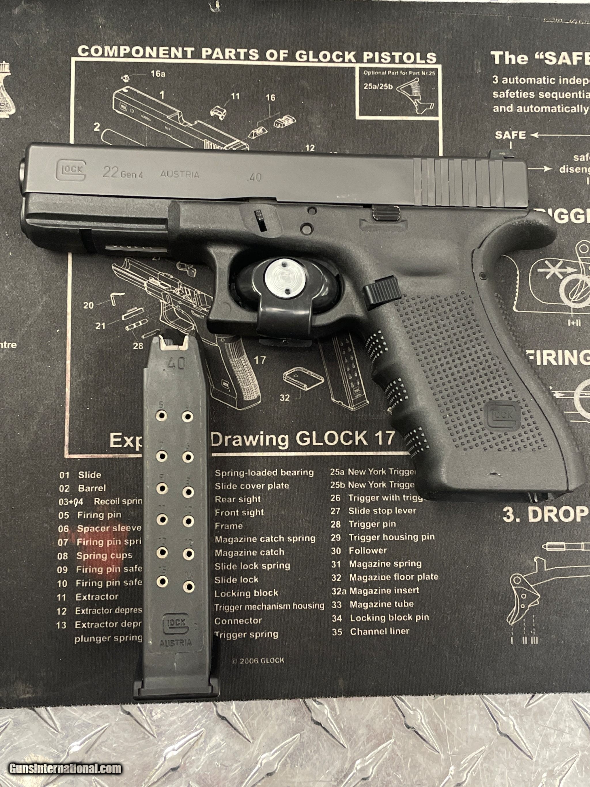 Description: Guns Listing ID: 661466 Includes OG Glock case with 1 mag SOLD Manufacturer: GLOCK Model: 22 G22 GEN 4 Caliber Info: .40 CALIBER Condition: Used - Non-Certified Barrels: 8 BARREL Finish: BLACK |