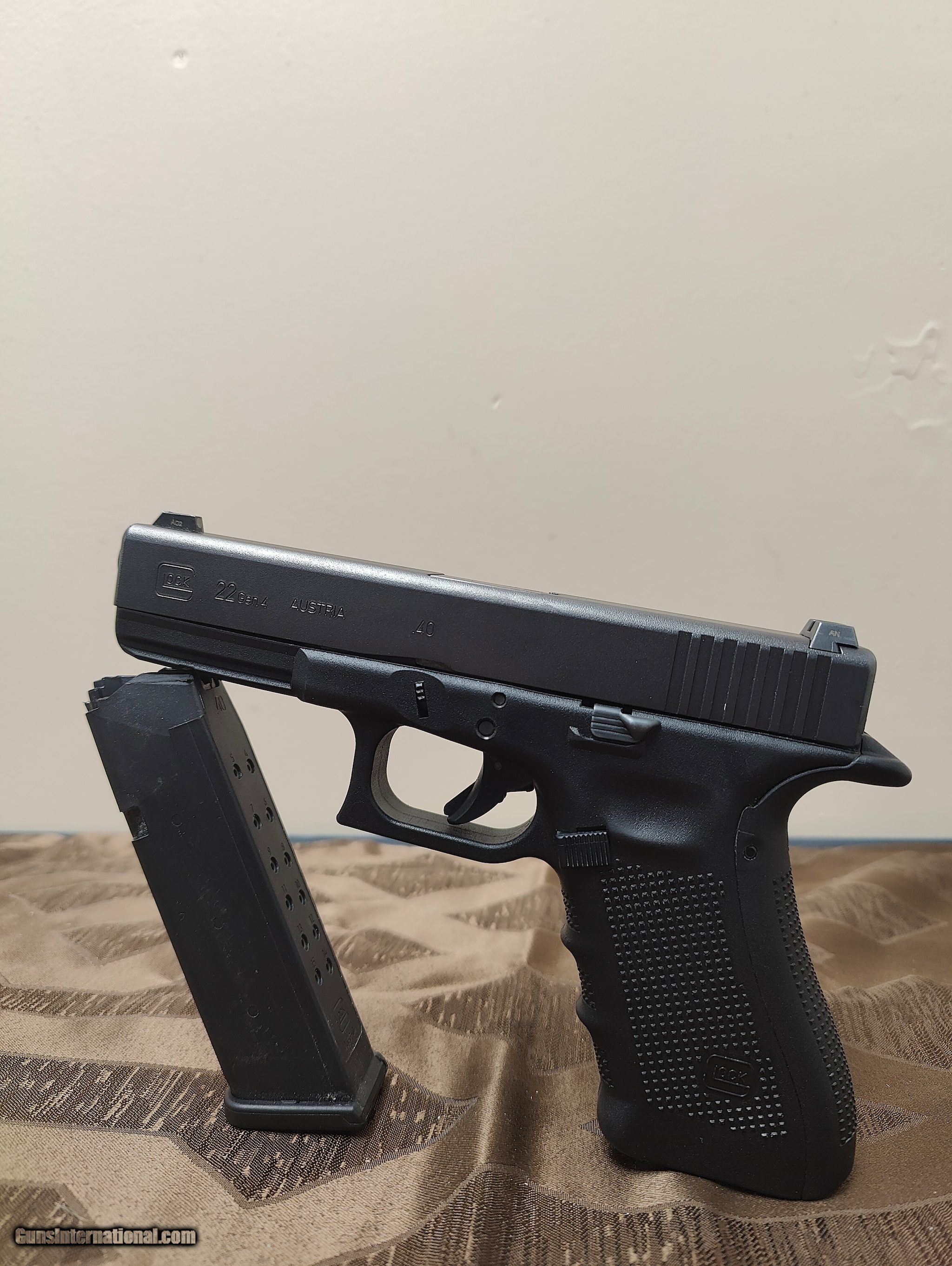 Description: Guns Listing ID: 771592 Polymer grip, with thicker back strap. Comes with 1 magazine and IWB holster. Minimal wear and tear. SOLD Manufacturer: GLOCK Model: 22 G22 GEN 4 Caliber Info: .40 S&W Condition: Used - Non-Certified Barrels: 4 BARREL Finish: BLUE STEEL/SYNTH GRIPS |