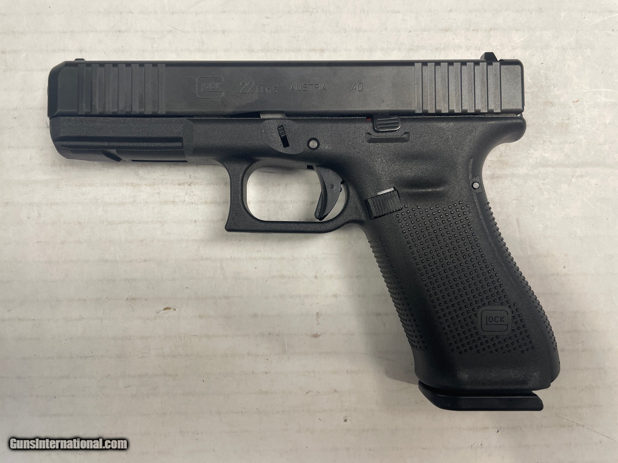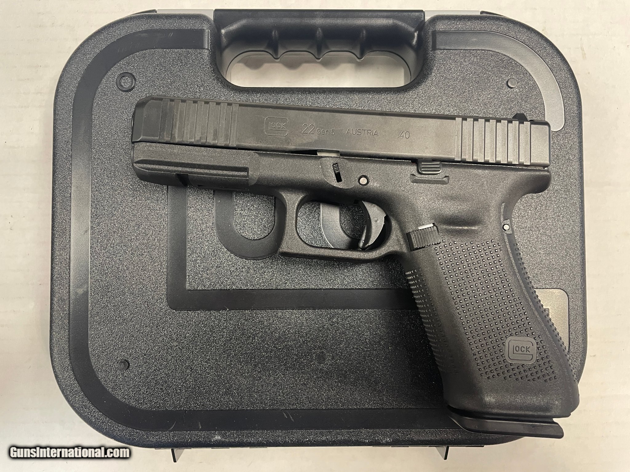 Description: Guns Listing ID: 1168971 Glock, 22 Gen5, Striker Fired, Full Size, 40S&W, 4.49\" Marksman Barrel, Polymer Frame, Matte Finish, Fixed Sights, 15Rd, 3 Magazines, Ambidextrous Slide Stop Lever, Flared Mag Well, nDLC Finished Slide and Barrel, No Finger Grooves -Firearm is in good condition -3x Mags, Hardcase SOLD Manufacturer: GLOCK Model: 22 G22 Gen 5 Caliber Info: .40 S&W Condition: Used - Non-Certified Barrels: 4.49 BARREL Finish: BLACK |