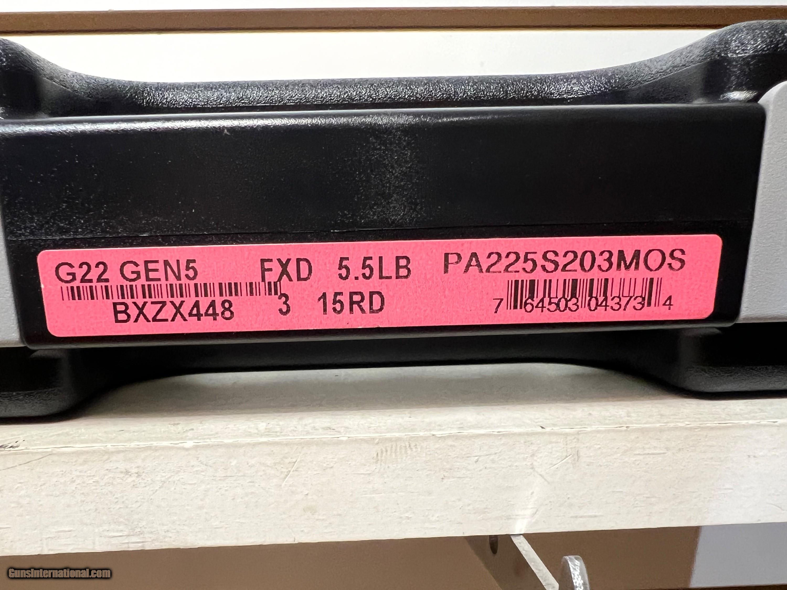 Description: (CALIBER:40SW);(MAG CAPACITY:S+W);(GUN TYPE:PISTOL: SEMI-AUTO);(MODEL SERIES:22);(ACTION:SAFE ACTION);(CAPACITY:15+1);(FINISH:BLACK MATTE);(SIGHTS:FT: WHITE DOT RR: WHITE OUTLINE);(BARREL LENGTH:4.49);(OVERALL LENGTH:7.32);(FEATURES:INCLUDES ADAPTER PLATES TO MOUNT POPULAR OPTICS);(DEPT:HANDGUN) SOLD Handgun Caliber: .40 Smith & Wesson (.40 Auto, 10 x 21 mm) Manufacturer: Glock Model: 22 Serial Number: BXZX448 |