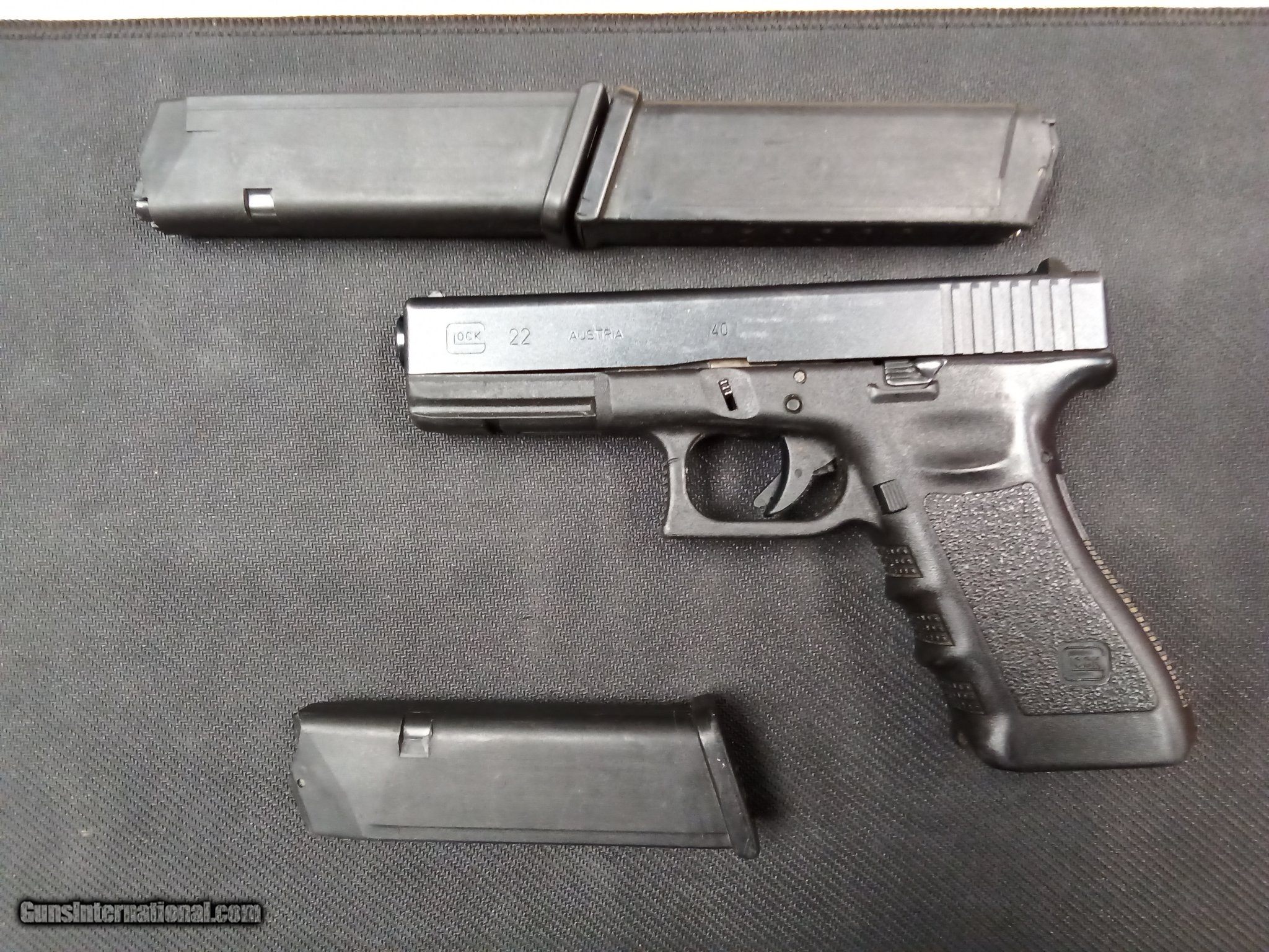 Description: Guns Listing ID: 377852 Used Glock 22 Gen 3. LE trade. Comes with 3 magazines. SOLD Manufacturer: GLOCK Model: 22 GEN 3 Caliber Info: .40 CALIBER Condition: Used - Non-Certified Barrels: 4.49 BARREL Action: SEMI AUTOMATIC Finish: BLACK Weight: not specified |
