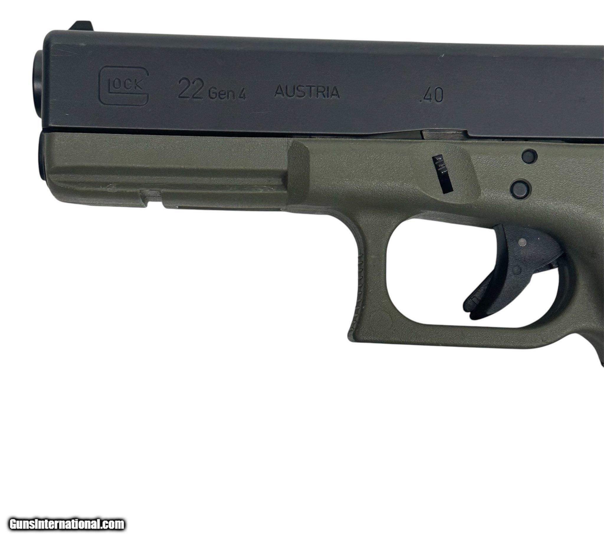 Description: Guns Listing ID: 513925 Manufacturer: Glock Importer: Glock Model: 22 Gen 4 Type: Handgun Action Type: Semi-Automatic Caliber / Gauge: .40 cal Finish: Flat Dark Earth Barrel Type: Single Grip Type: Polymer Barrel Length: 4.5\" Magazine Capacity: 20-29 Magazine Quantity: 1 Case Type: None Condition: Used Notes: Comes with 22rd extended magazine. SOLD Manufacturer: GLOCK Model: 22 Gen 4 Caliber Info: .40 CALIBER Condition: Used - Non-Certified Barrels: 4.5 Action: SEMI AUTOMATIC Finish: Flat Dark Earth |
