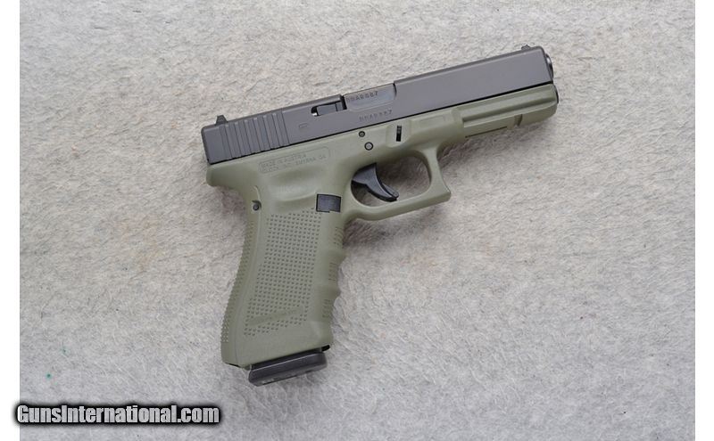 Description: This Glock Model 22 Gen 4 is a right hand semi-auto pistol in .40 S&W Cal. It has a 4.5 inch barrel with a rear serrated slide. A blade front sight and a notch rear sight with white highlights. The grip is a textured O.D. green polymer with molded finger grooves. It has a lower accessory rail. NIB. .40 S&W SOLD Chambers: 15 round magazine. Metal Condition: Excellent. Bore Condition: Excellent. Barrels: 4.5 inch barrel with a rear serrated slide. Weight: 26 oz. Sights: Blade front. Notch rear. White highlights. Item Location: Richfield, WI |