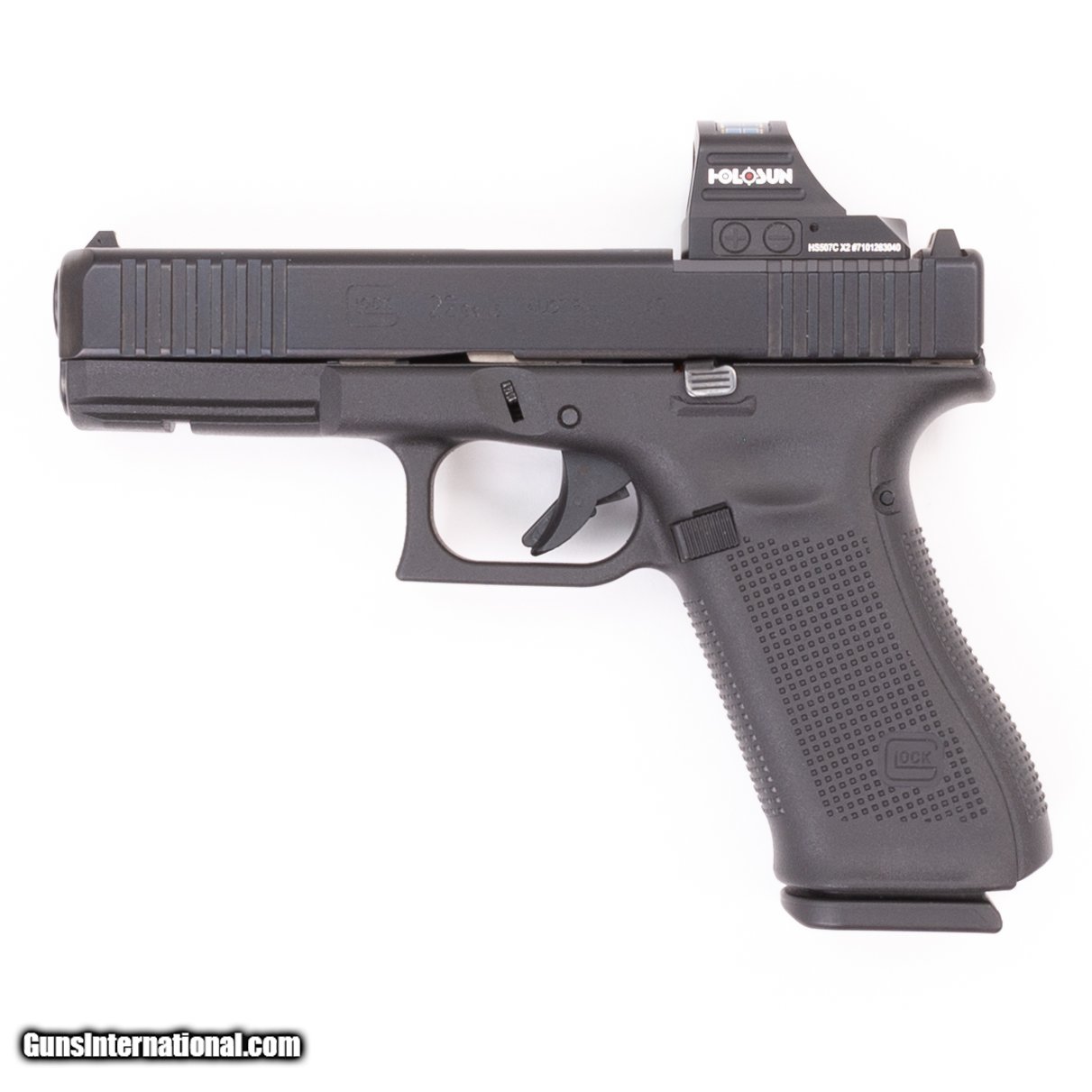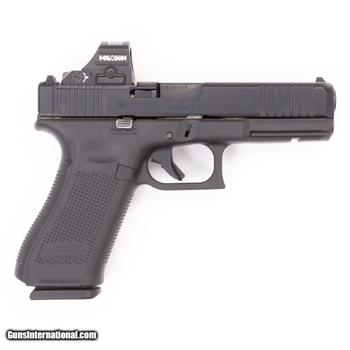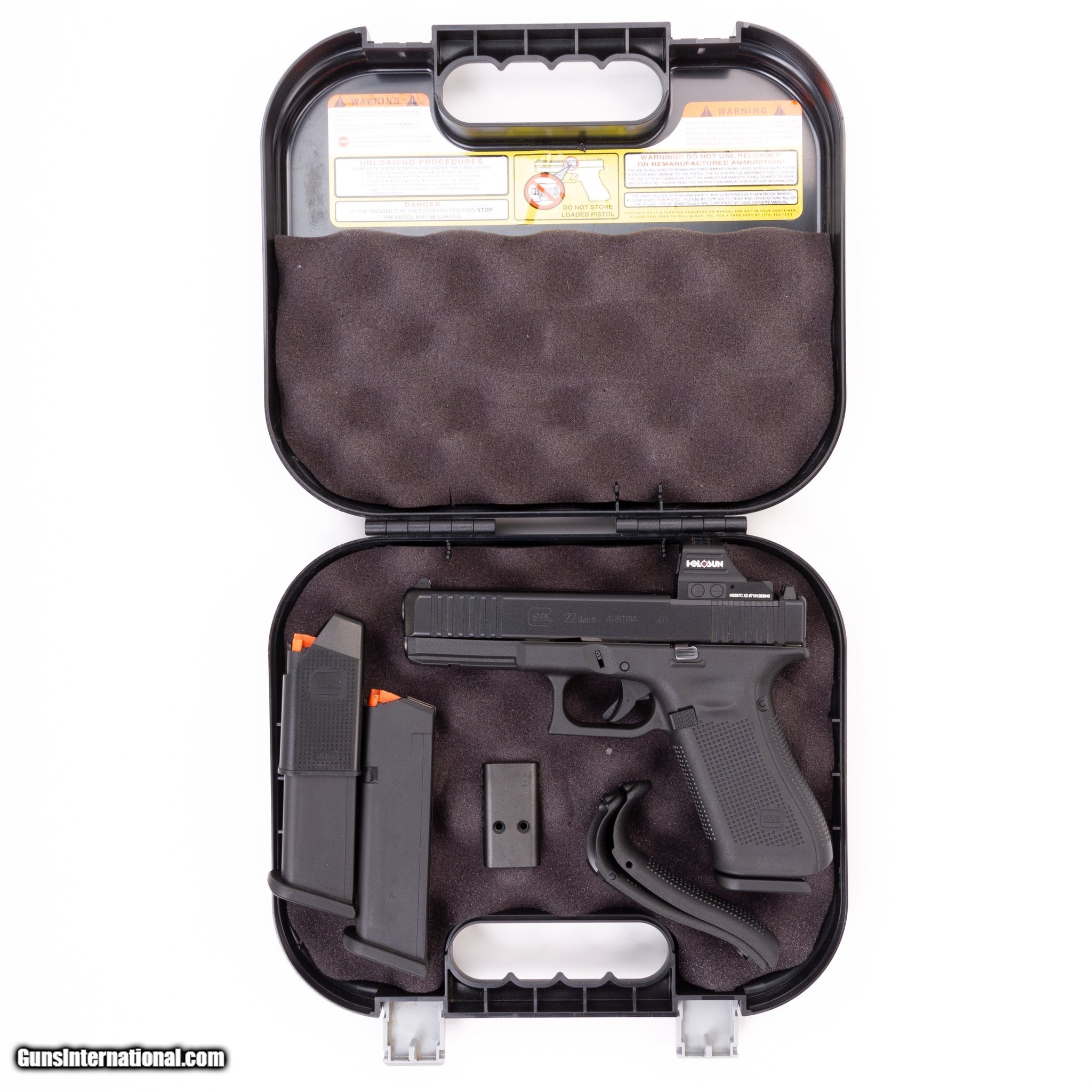 Description: Guns Listing ID: 395879 This G22 features standard Glock sights, an ambidextrous slide stop lever, and a Holosun HS507C X2 red dot optic (needs battery; currently very dim). Purchase includes the original case, three 15-round magazines, backstraps, and the OEM slide plate with screws. Get the best bang for your buck when you get a Certified Used Firearm . When you see the Certified Used stamp on any of our firearms, you can be confident that you‚‚re getting exactly what you want – a gun only in very good to excellent condition and held to the highest quality standard. All Certified Used Guns come with a ‚‚no questions asked‚‚ return policy . PLUS, ALL CERTIFIED USED GUNS SHIP FR SOLD Manufacturer: GLOCK Model: 22 Gen 5 Caliber Info: .40 S&W Condition: Used - Certified Barrels: 4.5 BARREL Finish: BLACK Weight: 1.6 lbs. |