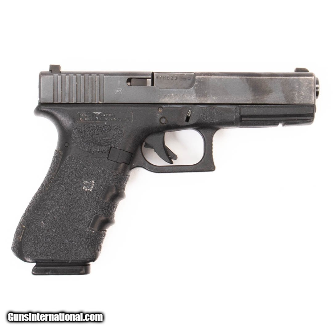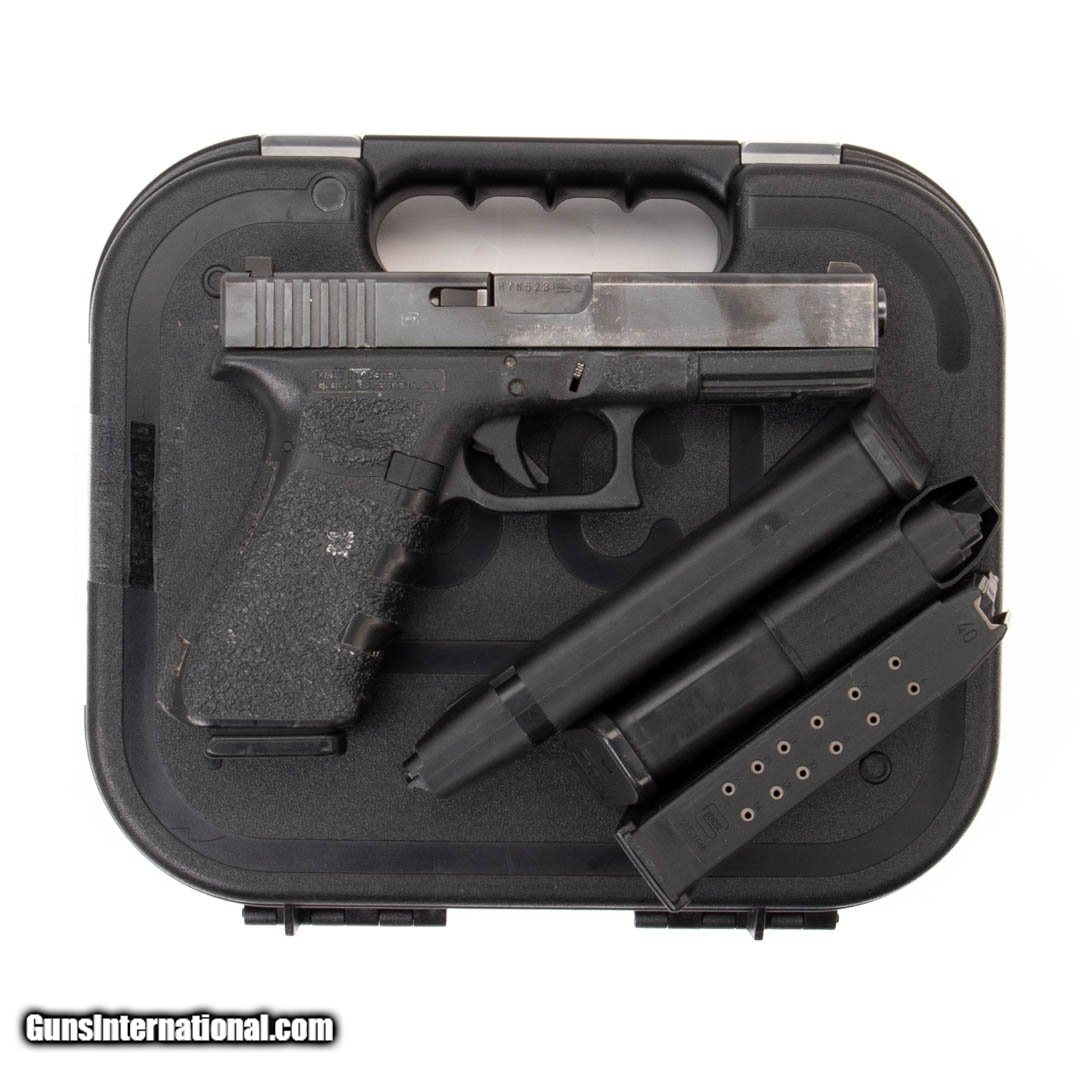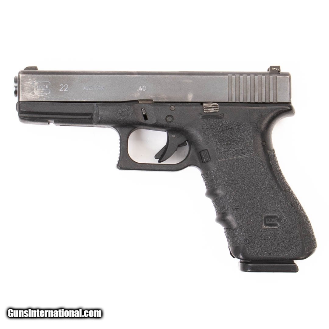Description: Guns Listing ID: 487980 This Glock G22 Gen 3 features a Talon grip wrap and night sights. It shows wear on the slide. Purchase includes a Glock case, three 15-round magazines, one 22-round magazine, and an extra 4.5\" 9mm conversion barrel. SOLD Manufacturer: GLOCK Model: 22 GEN3 Caliber Info: .40 S&W Condition: Used - Non-Certified Barrels: 4.50 Action: SEMI AUTOMATIC Finish: black Weight: 1.6 |