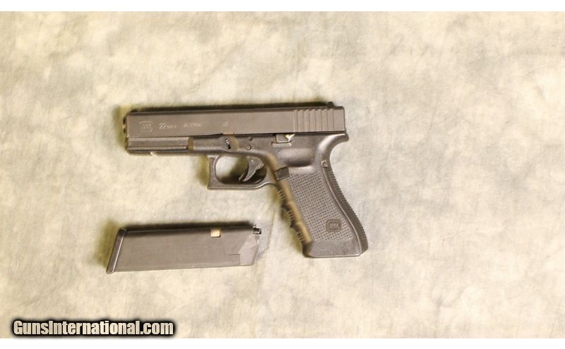 Description: This is a nice Glock Model 22 Gen4 striker-fired semi auto pistol in .40 S&W. The black Nitration finish barrel and slide are in very good condition. The 4.49" black Nitration finish barrel is very good with clear sharp rifling in its bore. The factory black RTF4(Rough Texture Finish) frame is very good. The front white dot and rear white outline sight makes for quick target alignment. The DA striker fired trigger is good, with a long take-up and firm crisp release. This Model 22 Gen4 pistol was a law enforcement trade-in. This Glock pistol comes with (1)one 15 round detachable magazine. .40 S&W SOLD Metal Condition: Very Good Bore Condition: Very Good Barrels: 4 1/4 Weight: 1 lbs. 9 oz. Sights: Factory Item Location: Cincinnati, OH |
