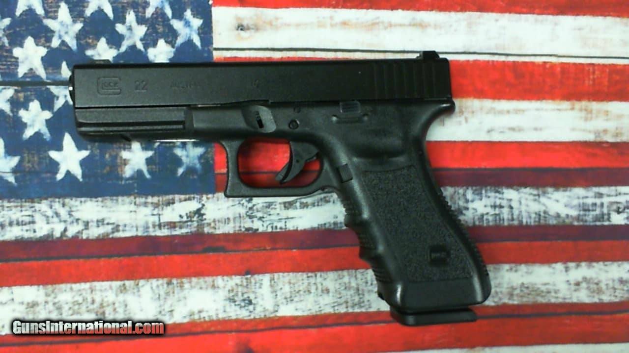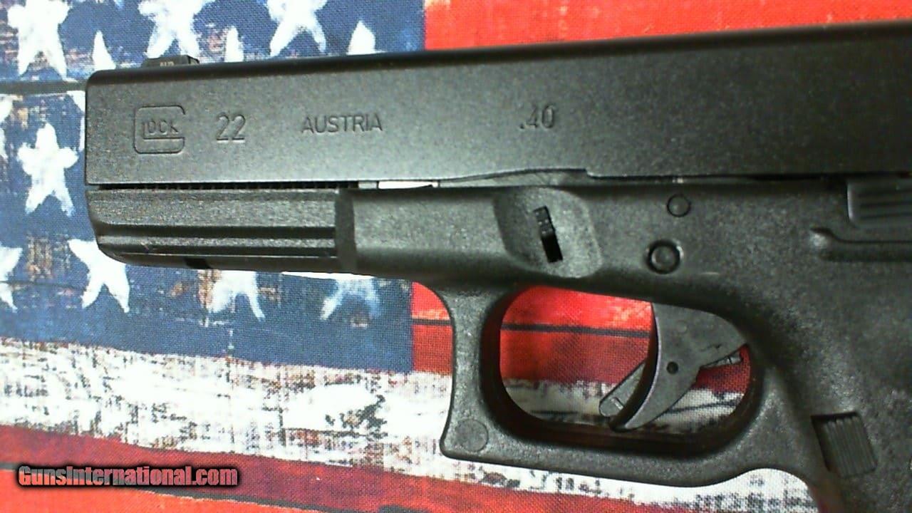 Description: Guns Listing ID: 445837 This firearm has been upgraded with night sights. Also has 3 15 round magazines. MANUFACTURER: GLOCK FAMILY: G22 Series MODEL: G22 TYPE: Semi-Auto Pistol ACTION: Safe Action CALIBER/GAUGE: 40 S&W FINISH: Gas Nitride FINISH TYPE: Black FRAME: Polymer Frame BARREL: 4.49\" OVERALL LENGTH: 8.03\" CAPACITY: 15 + 1 # OF MAGAZINES: 3 MAG DESCRIPTION: 15 rd. WEIGHT: 25.59 oz. SHIPPING WEIGHT: 3.527 lbs. SAFETY FEATURES: No Manual Safety CASE: Plastic SOLD Manufacturer: GLOCK Model: 22 Caliber Info: 40 S&W Condition: Used - Non-Certified Barrels: 4.5 BARREL Finish: BLUE AND BLACK |
