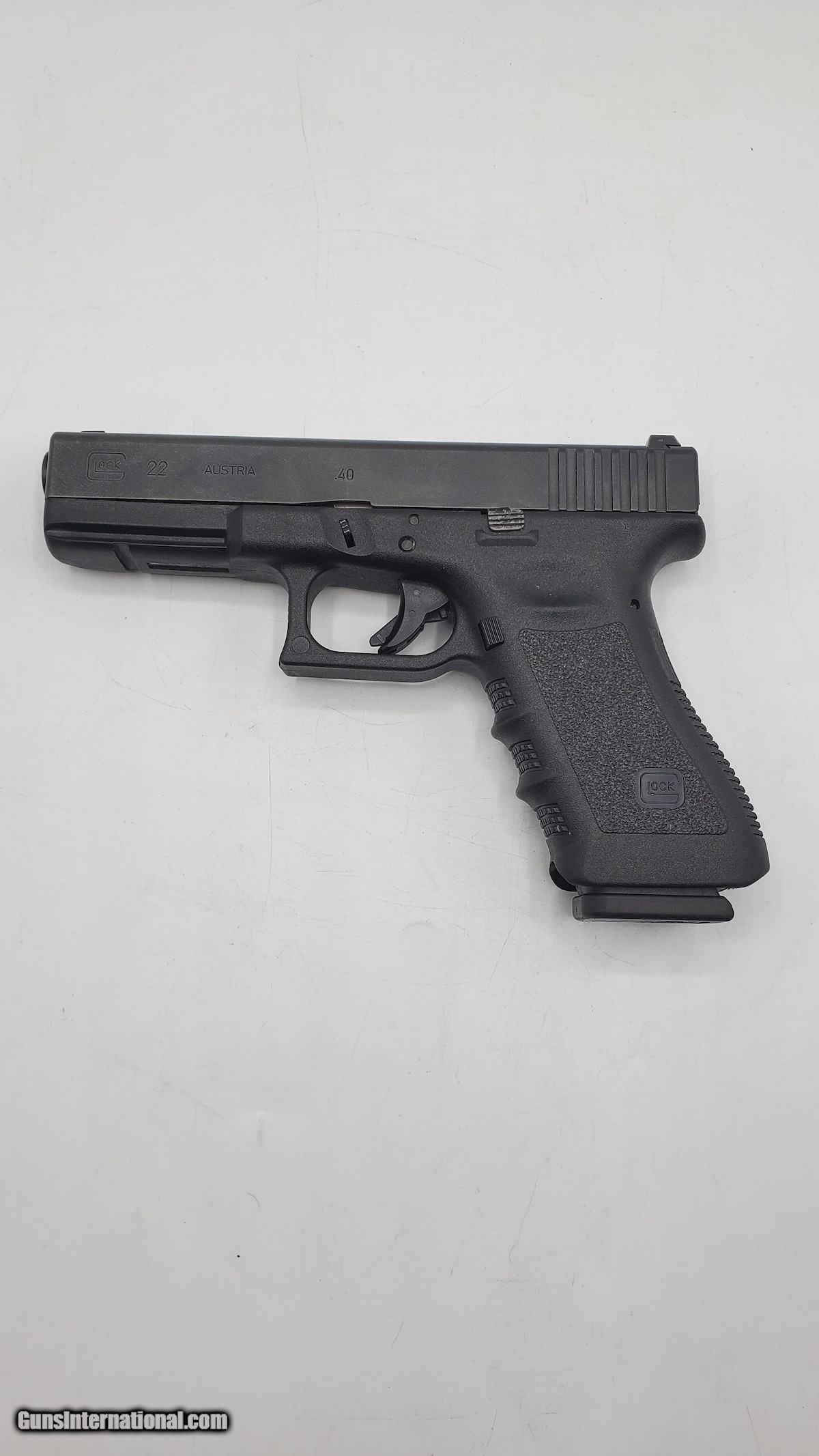 Description: Guns Listing ID: 460349 Comes with one mag. see photos for more info. SOLD Manufacturer: GLOCK Model: 22 Caliber Info: .40 S&W Condition: Used - Non-Certified Barrels: 4.5 BARREL Finish: BLACK |