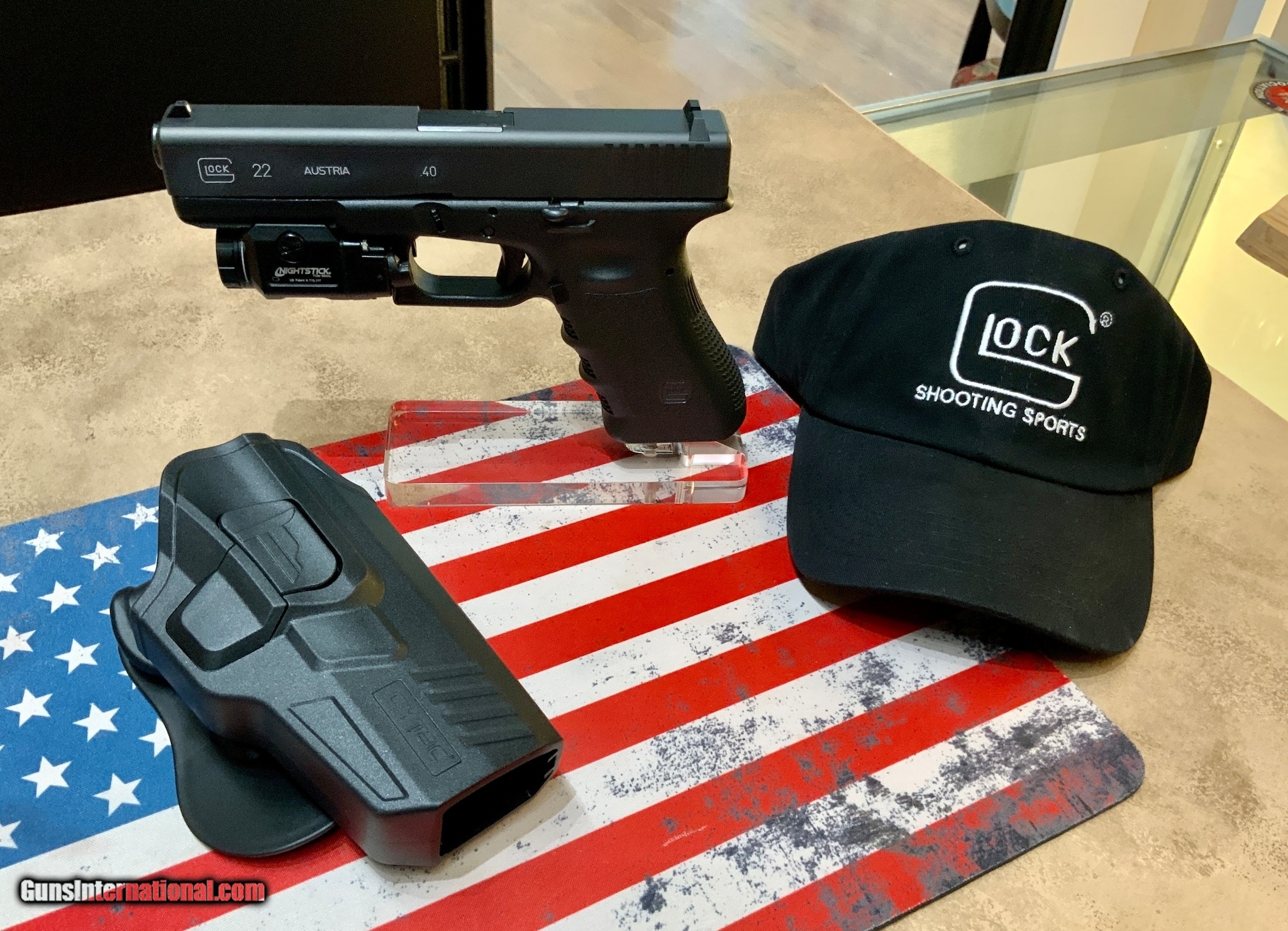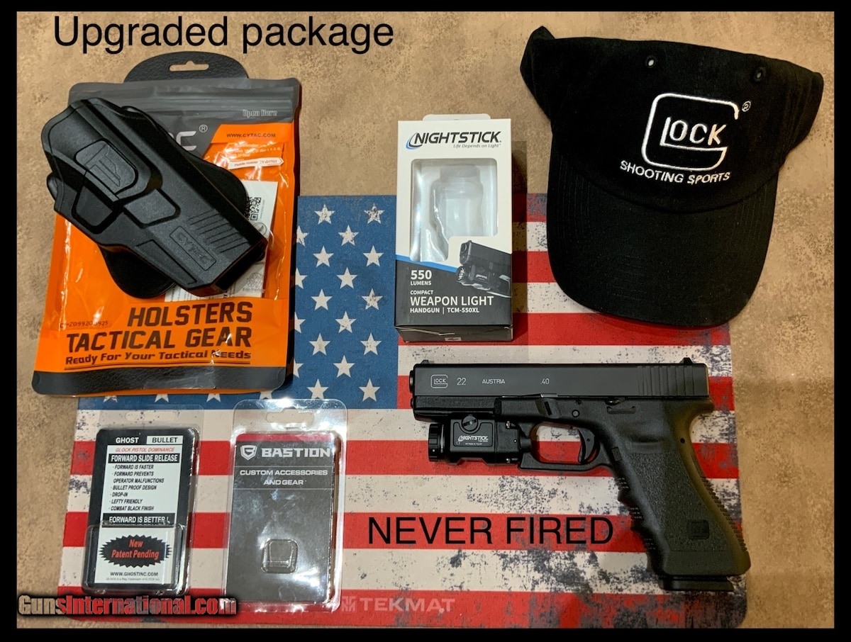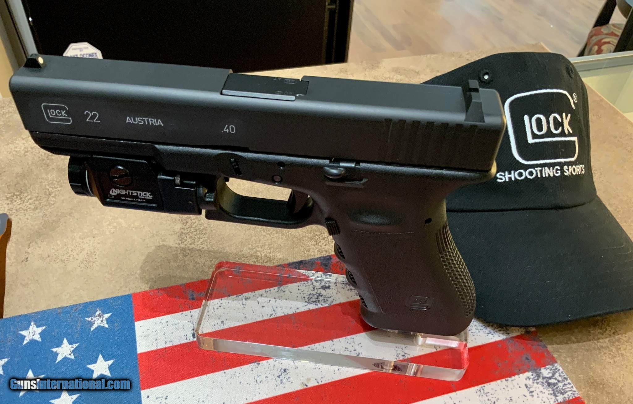 Description: Guns Listing ID: 536964 UNFIRED and Upgraded Glock 22 .40 S&W Pistol. (SAFE QUEEN) Includes Punisher Rear Slide Plate, NEW Holster, New Nightstick Flashlight, New Extended Slide release, NEW Glock Hat... THIS IS NOT A POLICE TRADE IN... (NEVER FIRED) Rare Find... SOLD Manufacturer: GLOCK Model: 22 Caliber Info: .40 S&W Condition: Used - Non-Certified Barrels: 5 BARREL Finish: BLACK |