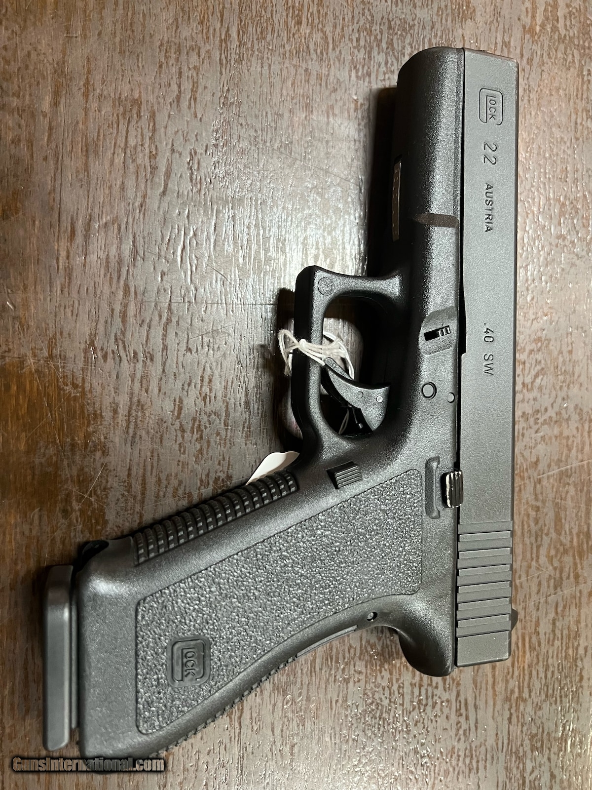 Description: Guns Listing ID: 661537 GLOCK 22 GOOD CONDITION SEE PICS, ORIGINAL BOX, ONE 10 ROUND MAG, ONE 15 ROUND MAG SOLD Manufacturer: GLOCK Model: 22 Caliber Info: 40S&W Condition: Used - Non-Certified Barrels: 4.25 BARREL Finish: BLACK |