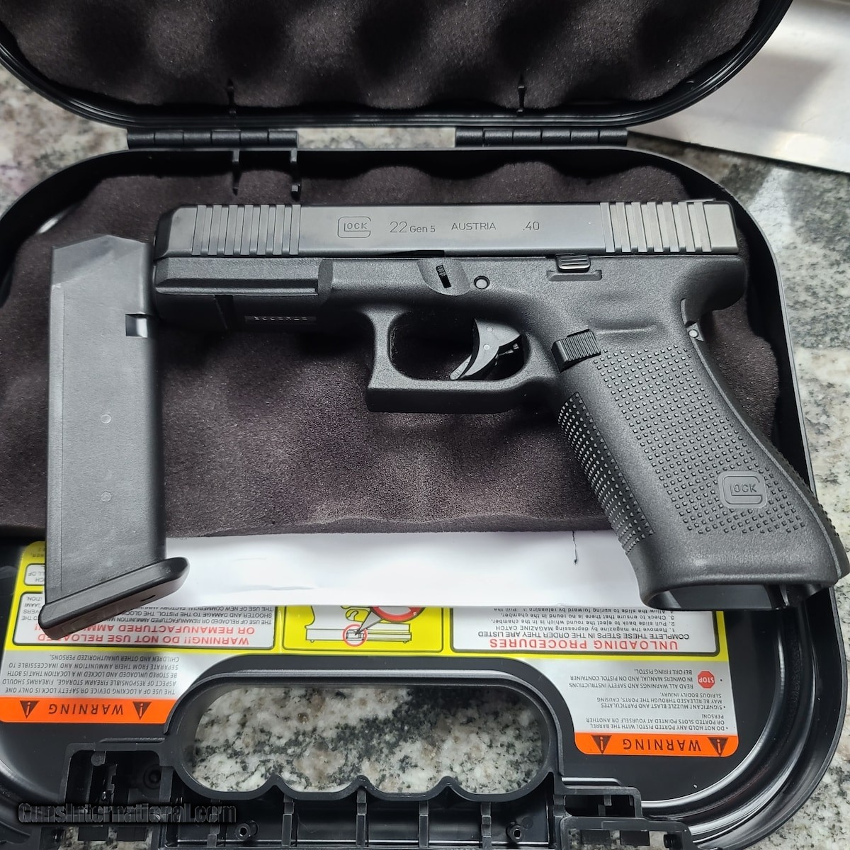 Description: Guns Listing ID: 402352 Great condition with clip and case! SOLD Manufacturer: GLOCK Model: 22gen5 Caliber Info: .40 S&W Condition: Used - Non-Certified Barrels: 4.5 BARREL Finish: BLUE |