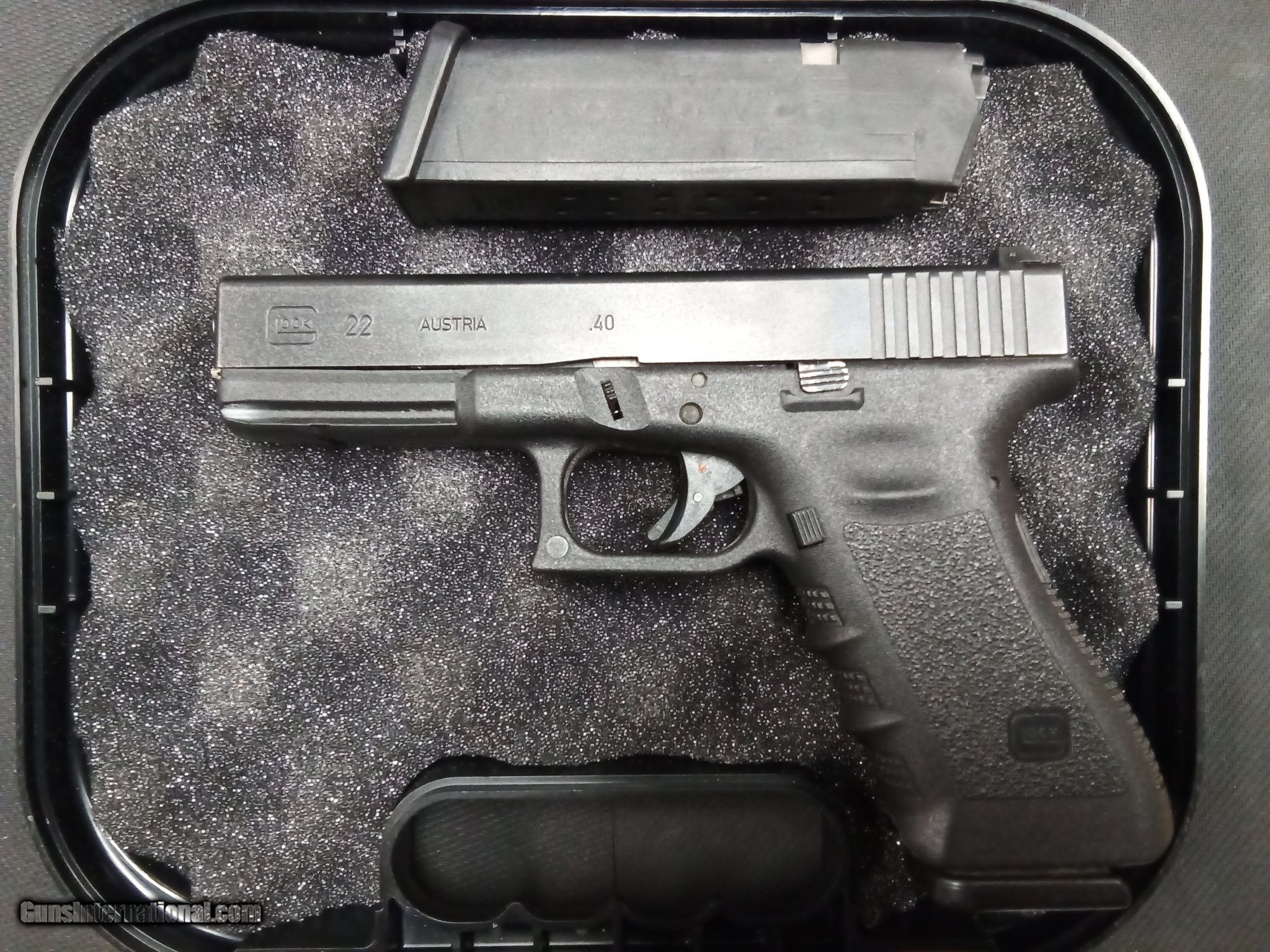 Description: Guns Listing ID: 1307353 Used Glock 22 Gen 3. LE trade in. Comes with two magazines and case. SOLD Manufacturer: GLOCK Model: G22 GEN 3 Caliber Info: .40 CALIBER Condition: Used - Non-Certified Barrels: 4.49 BARREL Finish: BLACK |