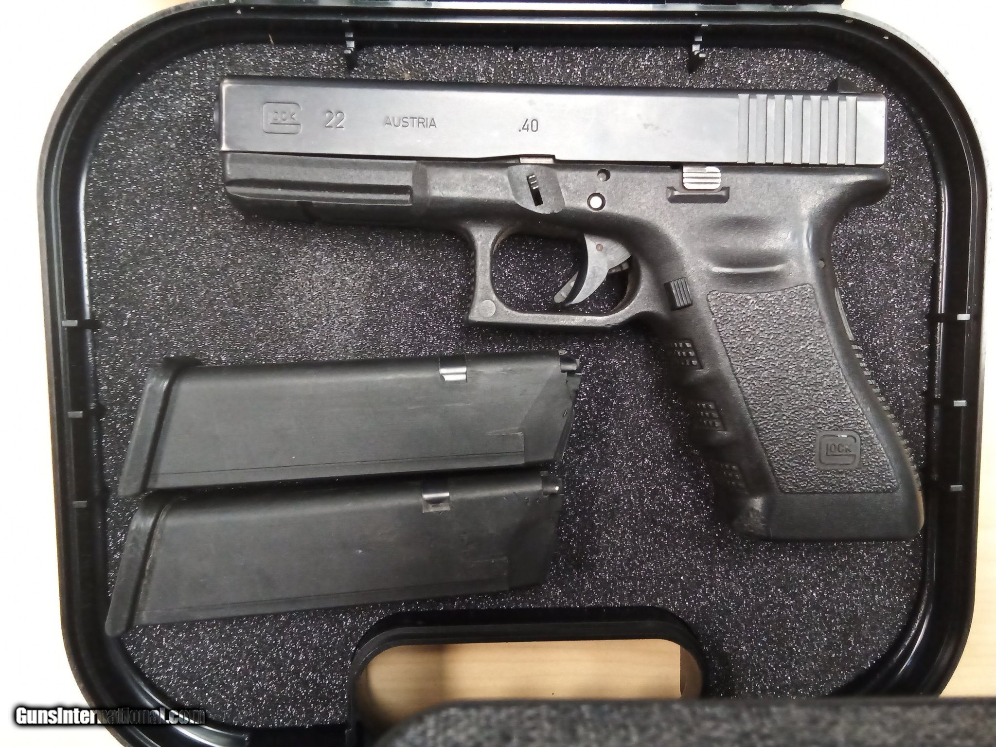 Description: Guns Listing ID: 546633 Used Glock 22 GEN3. LE Trade. Comes with 2 mags, and box. SOLD Manufacturer: GLOCK Model: G22 GEN 3 Caliber Info: .40 CALIBER Condition: Used - Non-Certified Barrels: 4.49" BARREL Action: SEMI AUTOMATIC Finish: black |