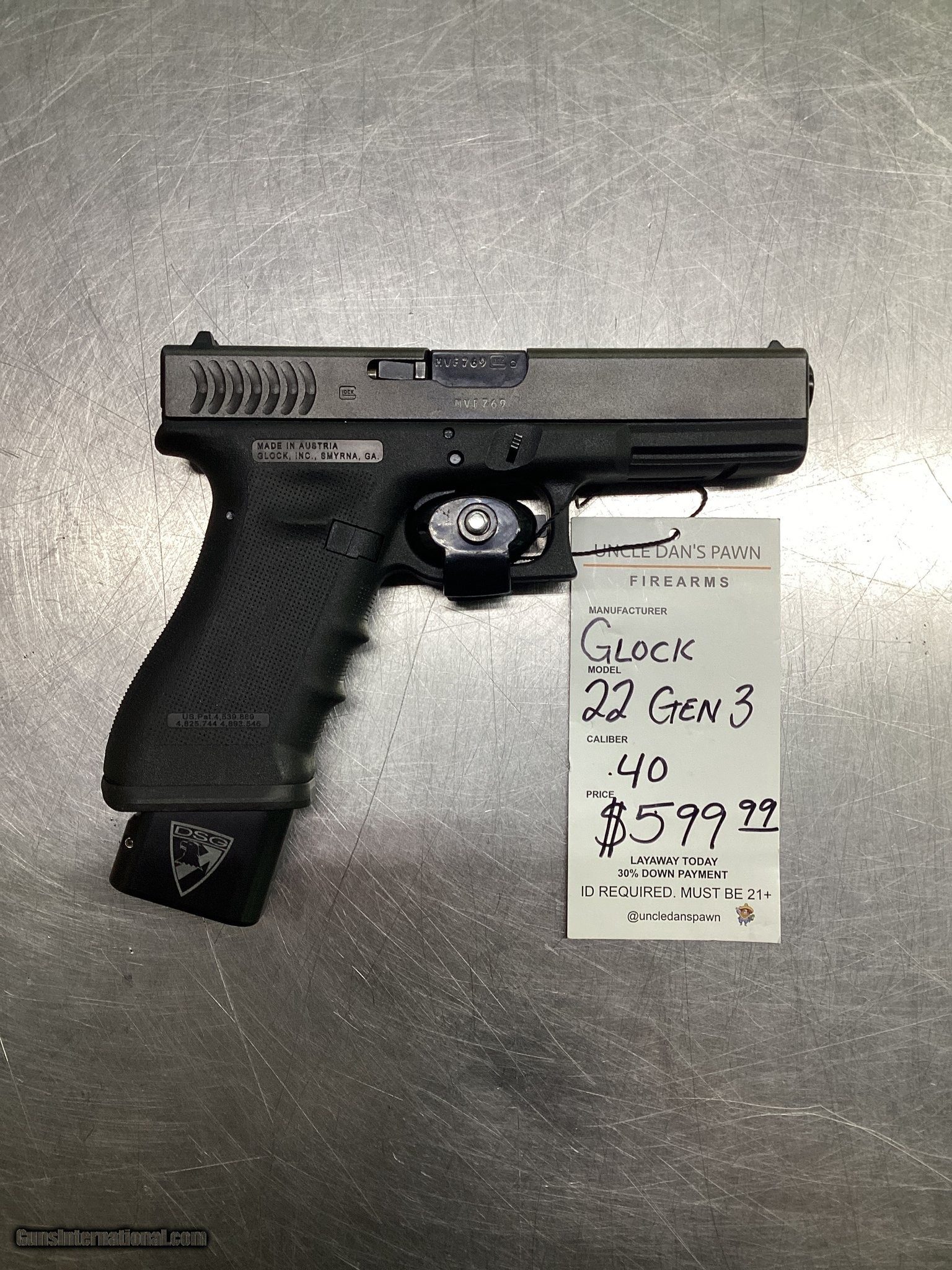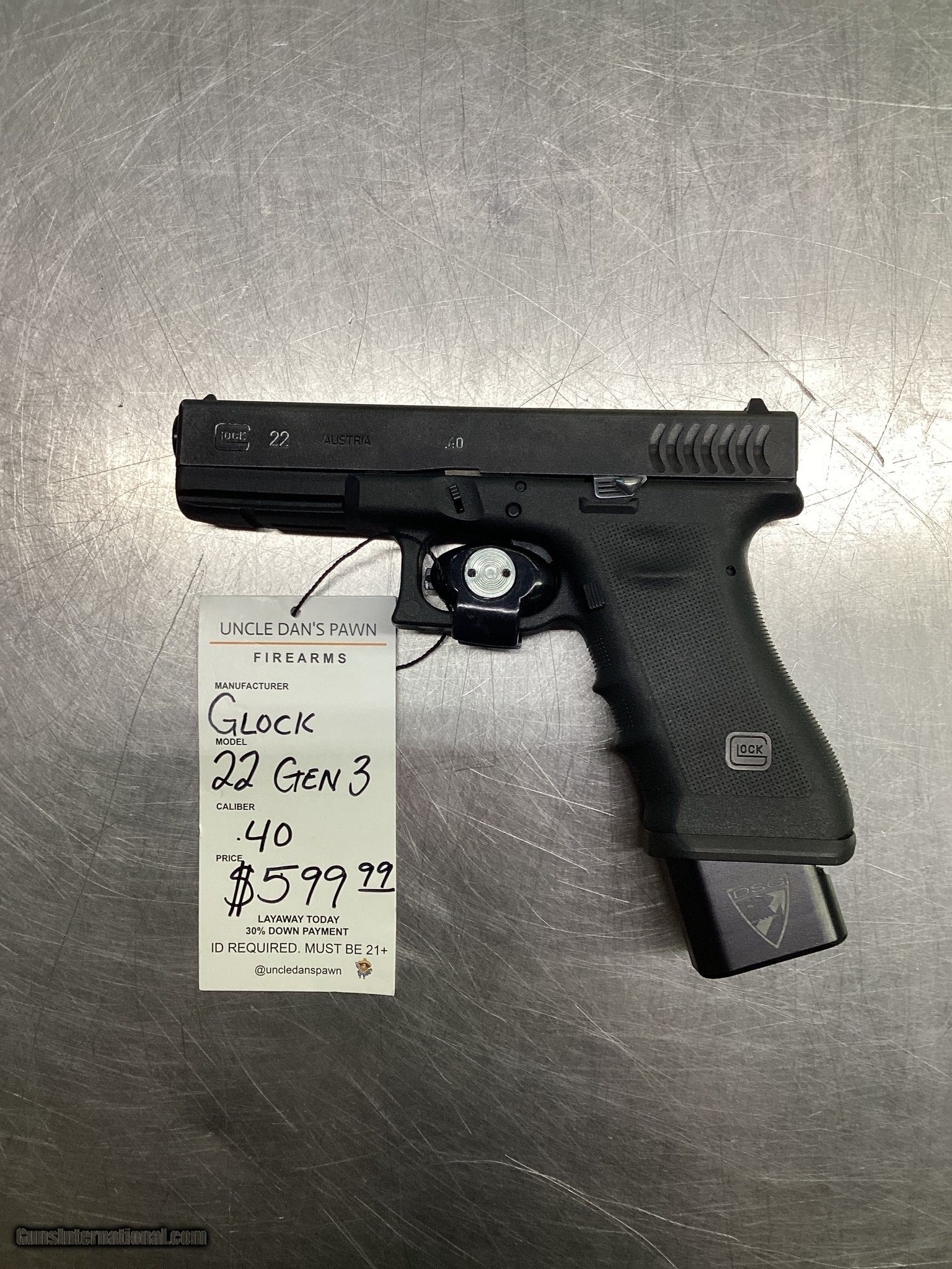 Description: Guns Listing ID: 594885 Glock .22 Gen3 .40 With case Manufacturer: GLOCK Model: G22 GEN 3 Caliber Info: .40 CALIBER Condition: Used - Non-Certified Barrels: 4" BARREL Action: SEMI AUTOMATIC Finish: black Price: $599.99 Contact Seller |