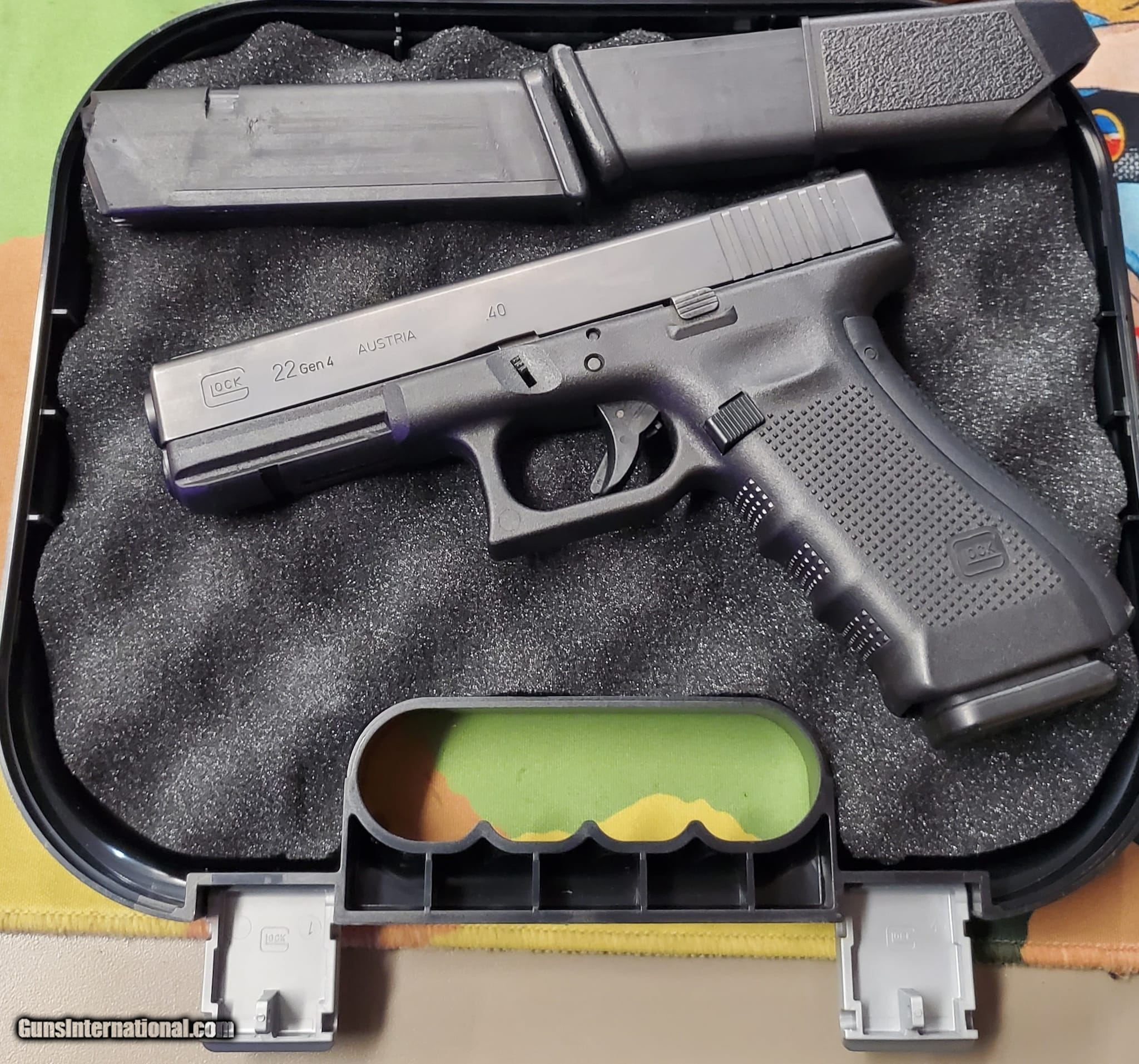 Description: Guns Listing ID: 1050292 !!!LE TRADE-IN!!! 1 magazine is marked \"OC PD\" -Night sights still light up - 3 magazines - Original hard case SOLD Manufacturer: GLOCK Model: G22 GEN 4 Caliber Info: .40 S&W Condition: Used - Non-Certified Barrels: 4.7 BARREL |