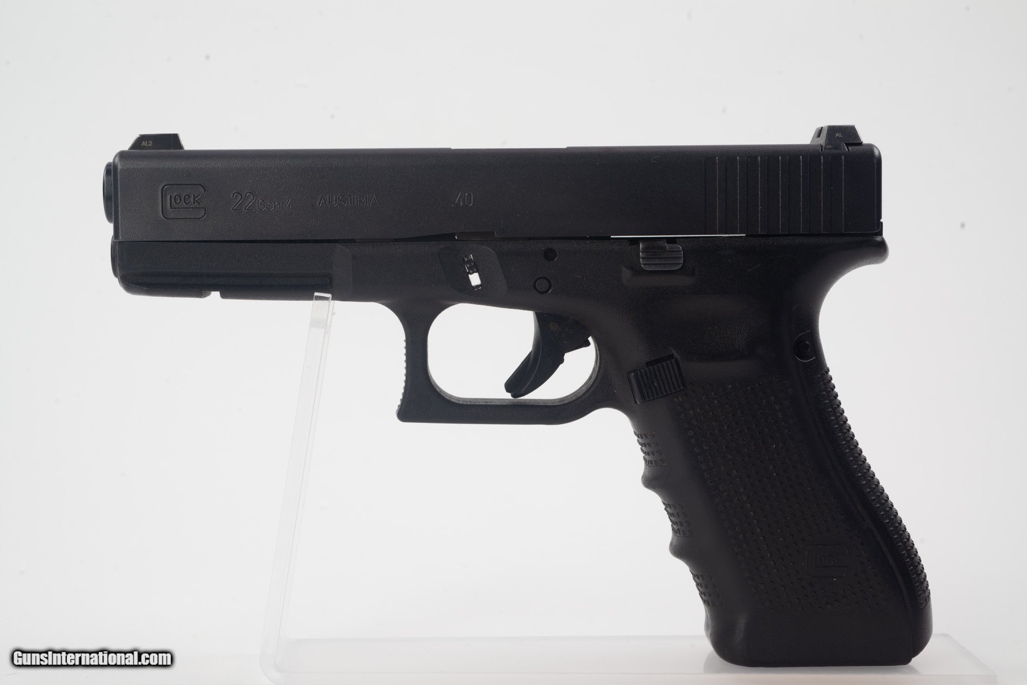 Description: Guns Listing ID: 514214 Glock, Imported by Glock Inc (Made in Austria), 22 Gen 4, Semi-Automatic Action, .40 S&W, 4.49\" Barrel, Polygonal Rifling, Right Hand. Reversible Oversized Mag Catch, 15-rd Detachable Magazine, Glock Safe-Action Trigger, Polymer Frame, RTF-4 Textured Frame, Finger Grooves, Black Finish, 3 Dot Tritium Night Sights (Tritium likely depleted or past useful life), Used This gun is in good condition. The slide finish is in good shape and shows little to no finish loss, but there is some light rust speckling present on the slide. The rust speckling is present in multiple areas, but is mostly concentrated near the rear serration area of the slide. The frame shows a some handling wear as some of the texture is worn and there is scratching present on the frame. There is also some handling wear present on the trigger guard. The barrel finish shows minimal wear on the barrel hood and near the muzzle. The bore is nice and shiny with plenty of rifling and shows no apparent rust and/or pitting. Specifications Finish/Color: Black Model: 22 Gen 4 Type: Semi-Automatic Pistol Barrel Length: 4.49\" Caliber: .40S&W Capacity: 15+1 Rds Sights: 3 Dot Tritium Night Sights Overall Length: ~7.5\ SOLD Manufacturer: GLOCK Model: G22 GEN 4 Caliber Info: .40 S&W Condition: Used - Non-Certified Barrels: 4.49 Action: SEMI AUTOMATIC Finish: black |