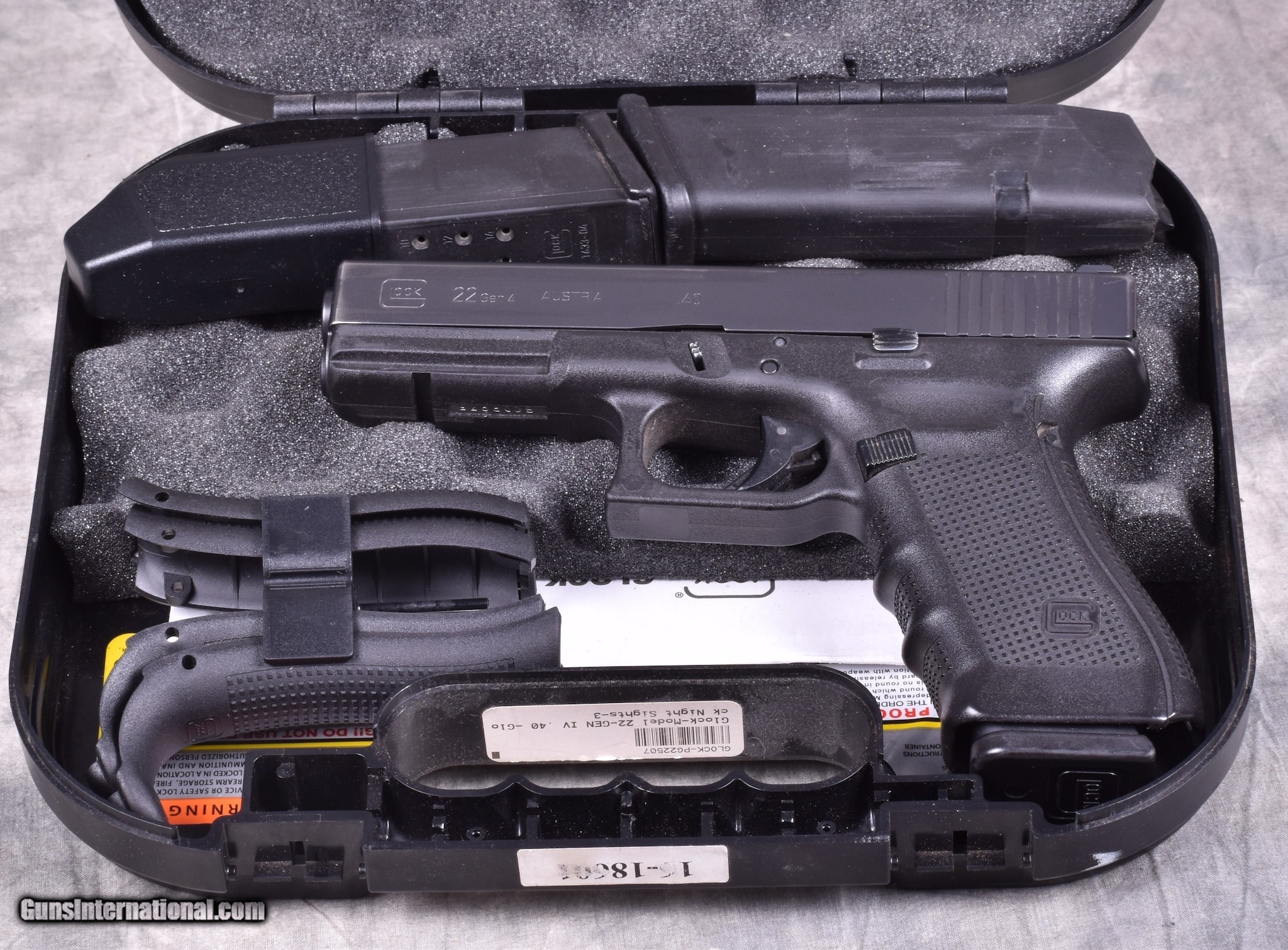 Description: Guns Listing ID: 801916 Includes THREE (3) fifteen round factory magazines, Glock steel night sights, additional backstraps, manual, and case. SOLD Manufacturer: GLOCK Model: G22 Gen 4 Caliber Info: .40 S&W Condition: Used - Non-Certified Barrels: 4.49 BARREL Finish: MATTE BLACK |