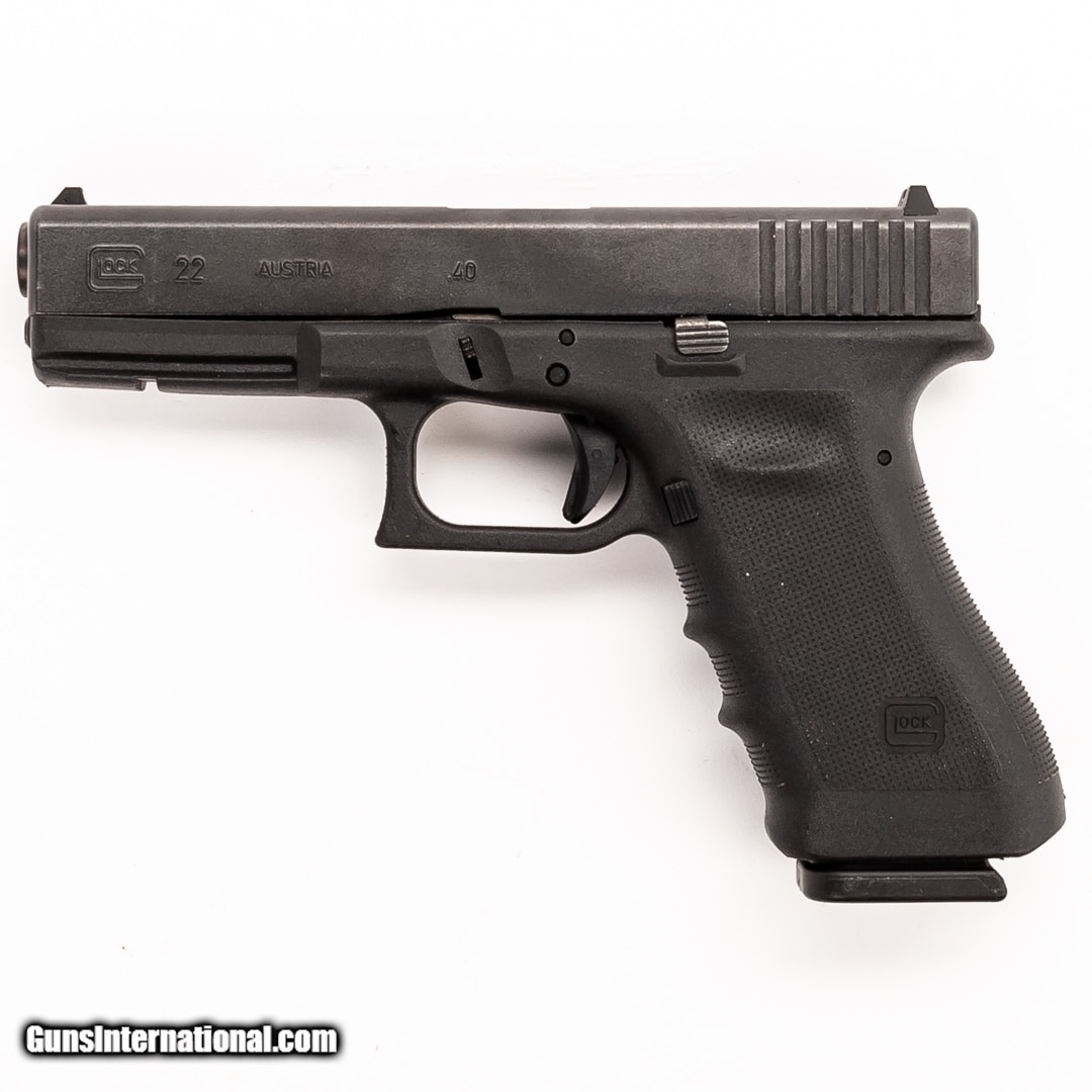 Description: Guns Listing ID: 376462 The Glock 22 \"Gen 3\"is a rock-solid handgun chambered in the .40 S&W cartridge. It‚‚s widely used by law enforcement and has a reputation for power, accuracy, and dependability. This is an RTF model, Rought Texture Frame. It will make an excellent self-defense sidearm. 2-15 round magazines, the original case, and a manual are included SOLD Manufacturer: GLOCK Model: G22 GEN3 RTF Caliber Info: .40 S&W Condition: Used - Certified Barrels: 4.25 BARREL Finish: BLACK |