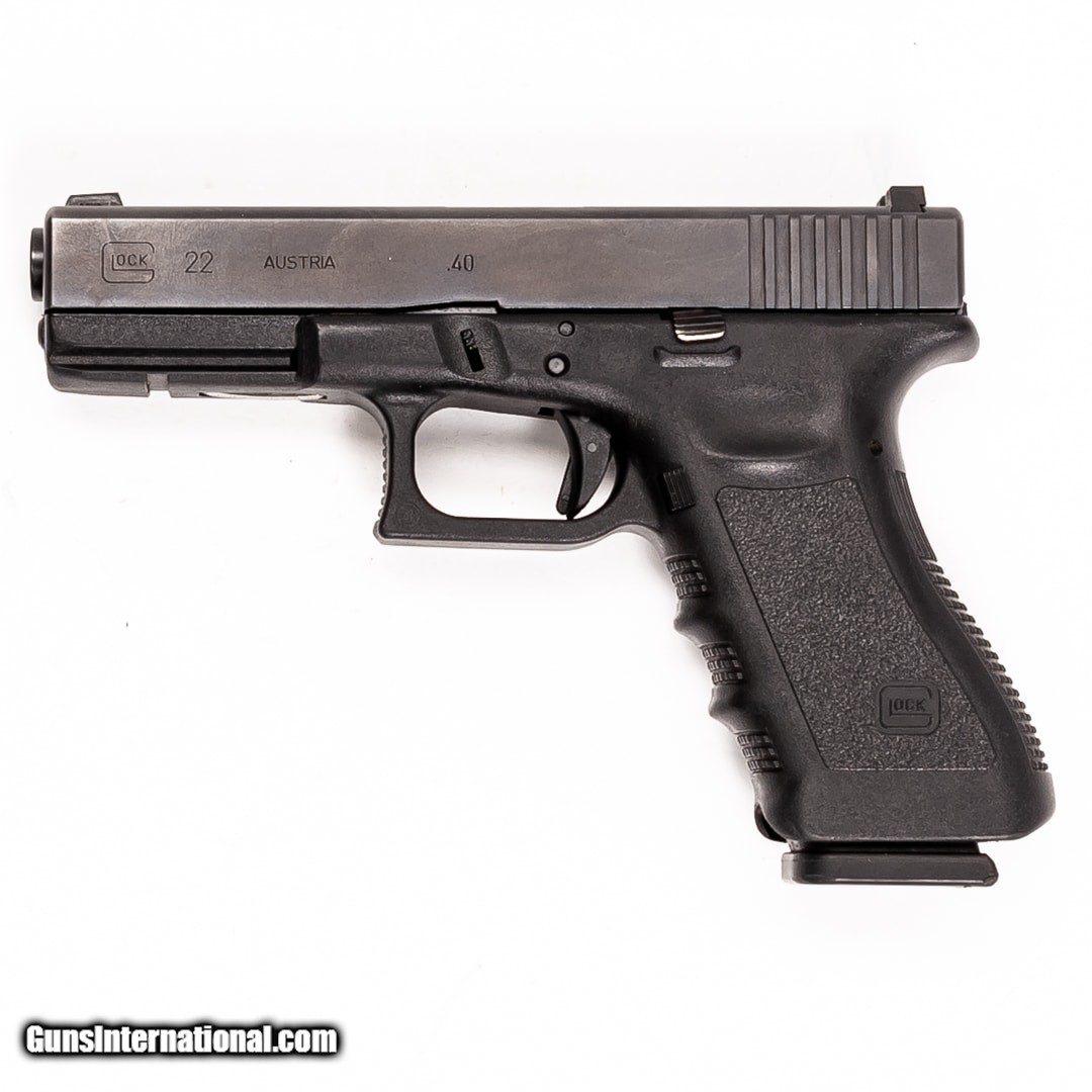 Description: Guns Listing ID: 319062 The Glock G22 Gen 3 is a rock-solid handgun chambered 40 S&W. It‚‚s widely used by law enforcement and has a reputation for power, accuracy, and dependability. This will make an excellent self-defense sidearm. This Glock 22 is in very good condition and comes with the original case, manual, two 10-round magazines, and one 15-round magazine SOLD Manufacturer: GLOCK Model: G22 GEN3 Caliber Info: .40 S&W Condition: Used - Certified Barrels: 4.5 BARREL Finish: BLACK |