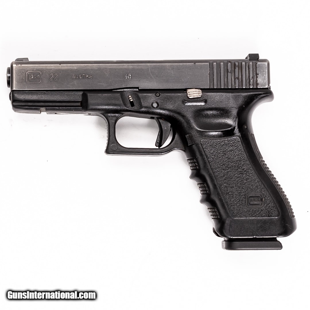 Description: Guns Listing ID: 328687 The Glock G22 Gen 3 is a rock-solid handgun chambered 40 S&W. It‚‚s widely used by law enforcement and has a reputation for power, accuracy, and dependability. This will make an excellent self-defense sidearm. This Glock 22 is equipped with old night sights. Overall, this pistol is rated in very good condition, with lots of wear on the frame, holster wear on the slide, and scuffs, scratches, and dings throughout. Purchase includes a hard case and three 14-round magazines SOLD Manufacturer: GLOCK Model: G22 GEN3 Caliber Info: .40 S&W Condition: Used - Certified Barrels: 4.5 BARREL Finish: BLACK |