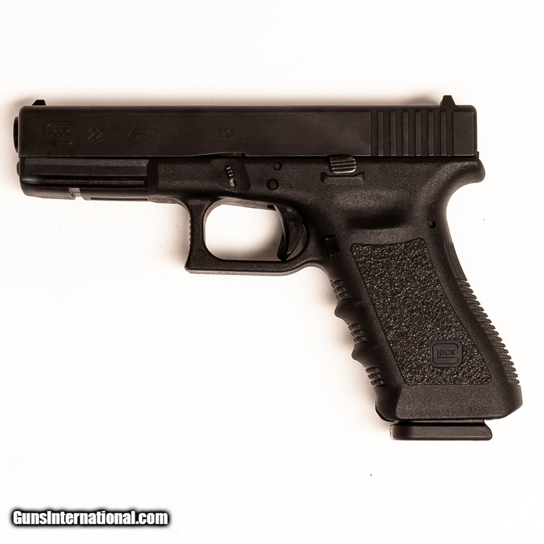 Description: Guns Listing ID: 619936 The Glock 22 Gen 3 is a rock-solid handgun chambered in the .40 S&W cartridge. It‚‚s widely used by law enforcement and has a reputation for power, accuracy, and dependability. This will make an excellent self-defense sidearm. 2-15 round magazines, a speed loader, and the original case are included SOLD Manufacturer: GLOCK Model: G22 GEN3 Caliber Info: .40 S&W Condition: Used - Certified Barrels: 4.5 BARREL Finish: BLACK |