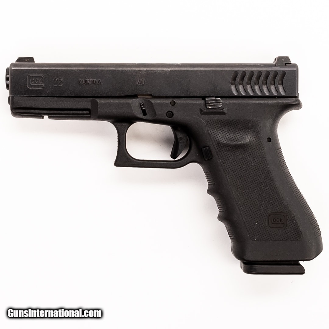 Description: Guns Listing ID: 394113 The Glock 22 is a rock-solid handgun chambered in 40 S&W. It's widely used by law enforcement and has a reputation for power, accuracy, and dependability. It will make an excellent self-defense sidearm. This G22 Gen 3 RTF (Rough Texture Frame) includes a tactical Tupperware case and three 15-round magazines. SOLD Manufacturer: GLOCK Model: GLOCK 22 GEN 3 RTF Caliber Info: .40 S&W Condition: Used - Certified Barrels: 4.5 BARREL Finish: BLACK |