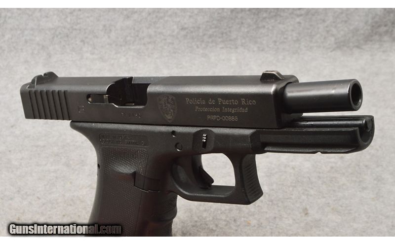 Description: This Glock Model 22 semi auto striker fired pistol in .40 S&W is in good condition. The black steel slide and black polymer frame are good, with holster and use wear. The 4 1/2" black steel barrel is good with clear rifling in its bore. The RH front of slide is stamped Policia de Puerto Rico, which verifies this was a police trade-in. The Glock 22 pistol is by far the most used police service pistol used in the U.S. This Glock 22 does come with one(1) 10 round magazine, but no box or any other accessories. .40 S&W SOLD Metal Condition: Good Bore Condition: Good Barrels: 4 1/2" Steel Triggers: Factory Black Flat Faced Striker Fired Stock Dimensions: LOP 4" Height 5 1/2" Length 8 1/4 Weight: 26 oz. Sights: Factory Front White Dot with Rear Notch White Outline Item Location: West Chester, OH |