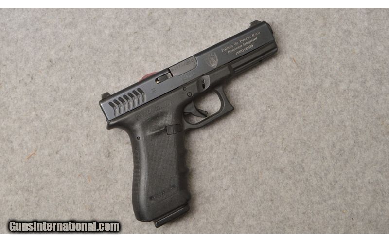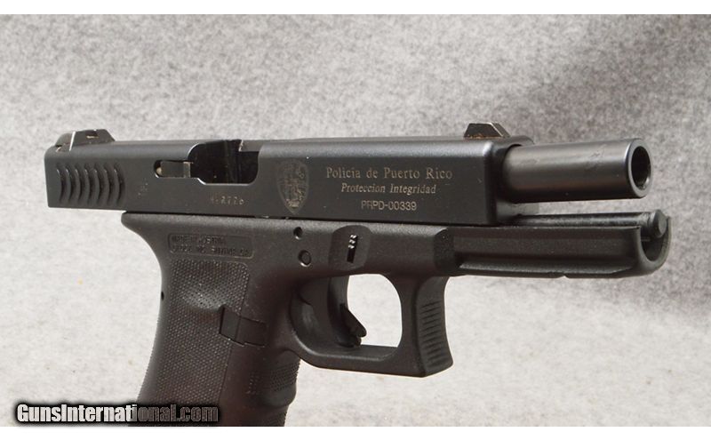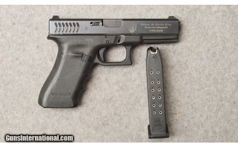 Description: This Glock Model 22 semi auto striker fired pistol in .40 S&W is in very good condition. The black Nitration finish barrel and slide are very good, with minor holster wear on the corners of the sights. The RTF4 reinforced polymer frame is good. The 4 1/2" cold hammer forged barrel is very good with sharp clear rifling in its bore. The striker fired trigger is good with a short take-up and a firm release. The RH front of slide is stamped Policia de Puerto Rico, verifying this was a police trade-in. This Model 22 pistol comes with one(1) 15 round magazine, but no box or any other accessories are included. .40 S&W SOLD Metal Condition: Very Good Bore Condition: Very Good Barrels: 4 1/2" Cold Hammer Forged Nitration Black Finish Triggers: Factory Black Flat Faced Striker Fired Stock Dimensions: LOP 4" Height 5 1/2" Length 8 1/4 Weight: 26 oz. Sights: Factory Front White Dot with Rear Notch White Outline Item Location: West Chester, OH |